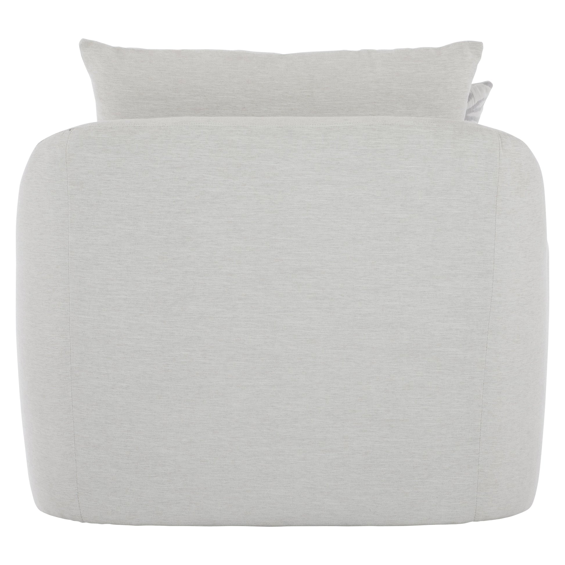 The Asher Fabric Swivel Chair is defined by generous proportions and sculptural comfort, offering an inviting presence with a distinctly modern sensibility. Its unique frame features high-loft, curved arms and a beautifully shaped back that together create a fluid, enveloping silhouette. Upholstered in fabric, the chair’s deep seat and substantial scale establish it as a statement piece that feels both relaxed and refined.