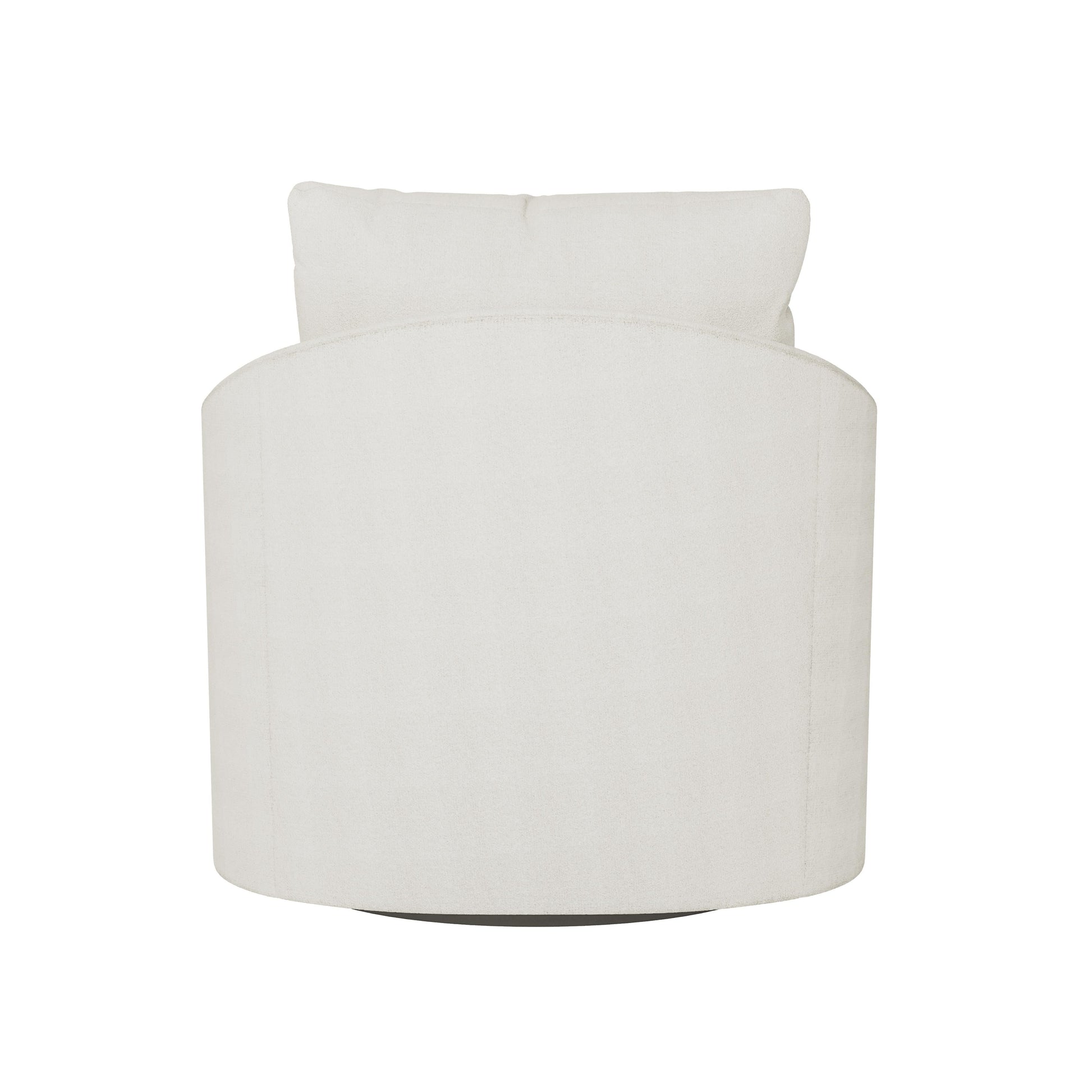 The Astoria Fabric Swivel Chair embodies relaxed modern sophistication through a balance of clean lines and inviting curves. Its softly rounded silhouette is defined by sloped, subtly tapered shelter arms, with welting that traces the contours and lends a tailored finish. The result is a refined barrel chair presence that feels equally polished and welcoming.