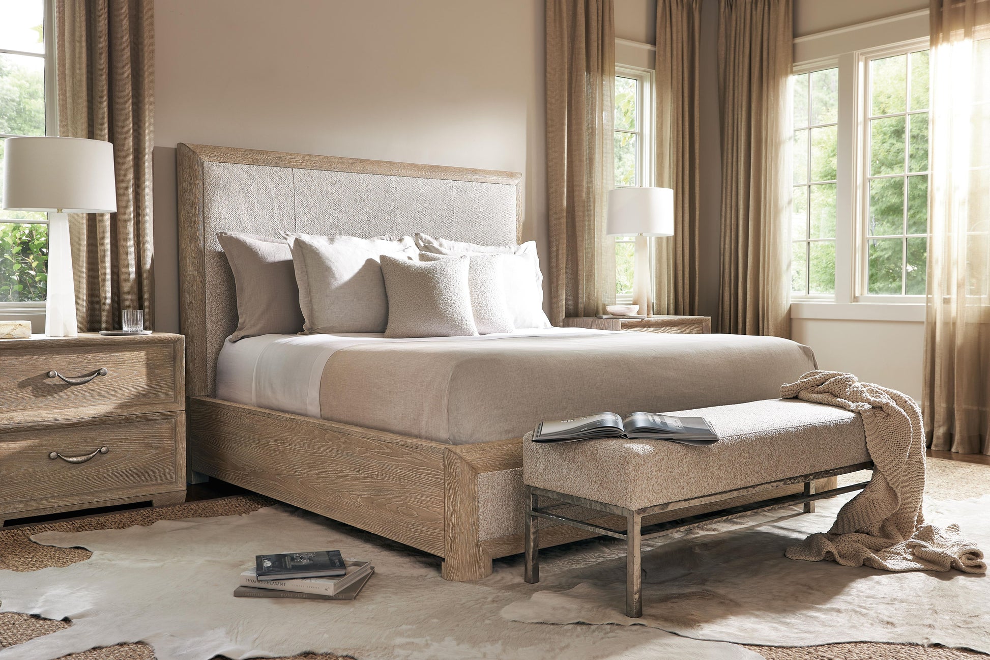 The Aventura Panel Bed brings a refined modern rustic sensibility to the bedroom, balancing clean architectural lines with inviting comfort. A wood-framed silhouette is softened by inset upholstered panels on both the headboard and low footboard, creating a tailored look with subtle texture and visual depth.