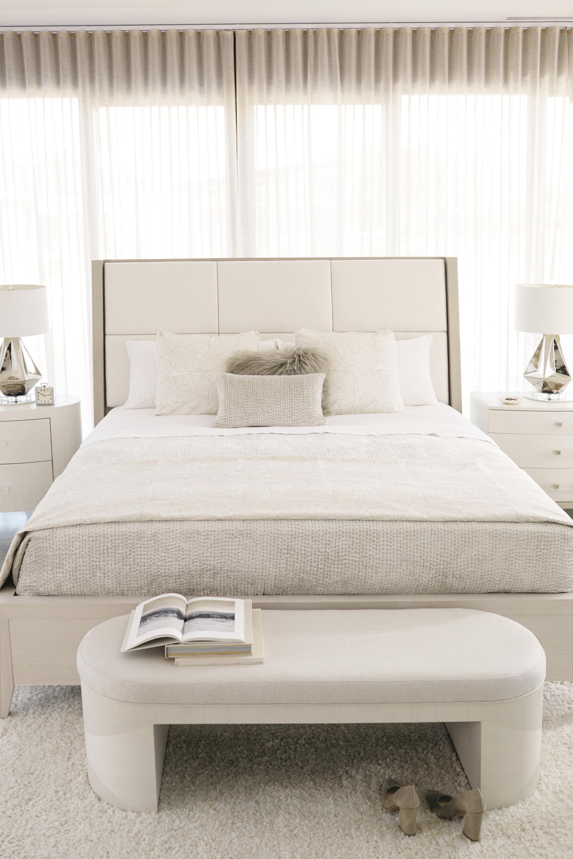 - King-size upholstered panel bed with a sleek, transitional design