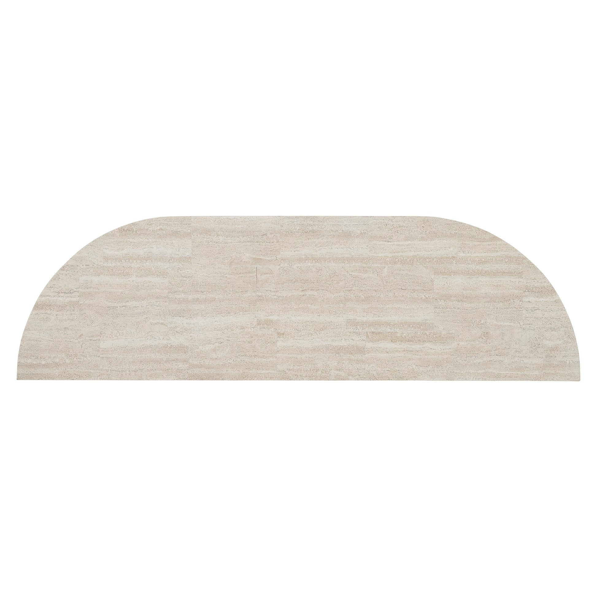 - Laminated stone top with organic, neutral coloration