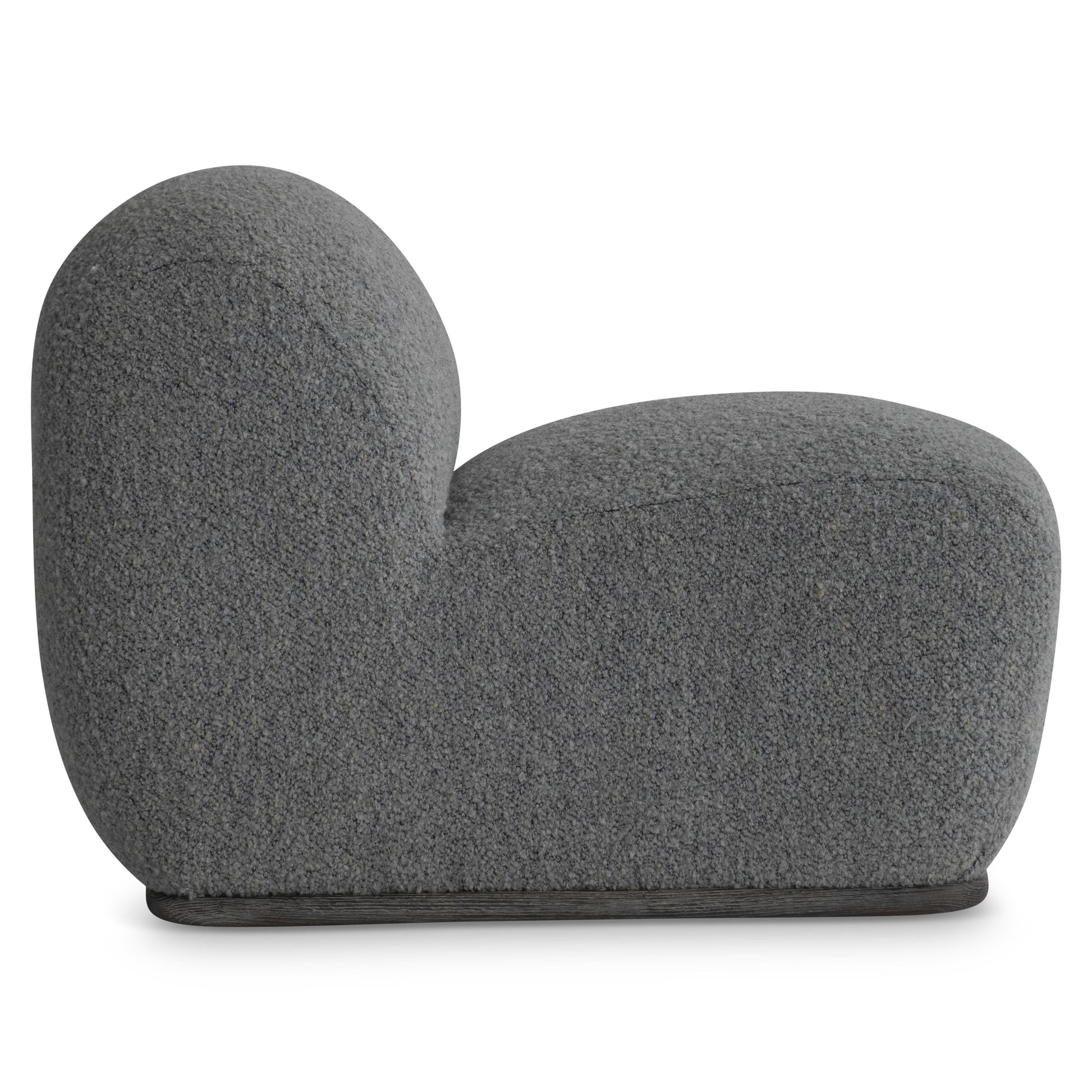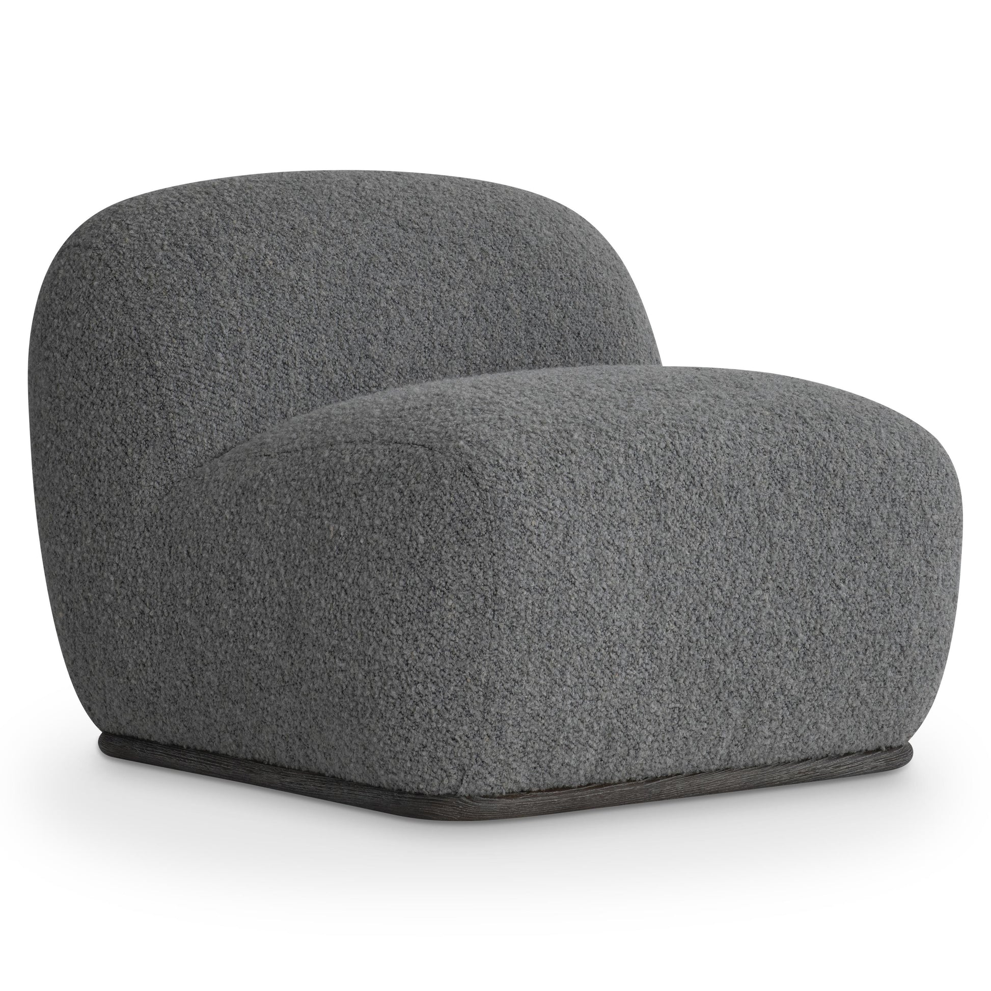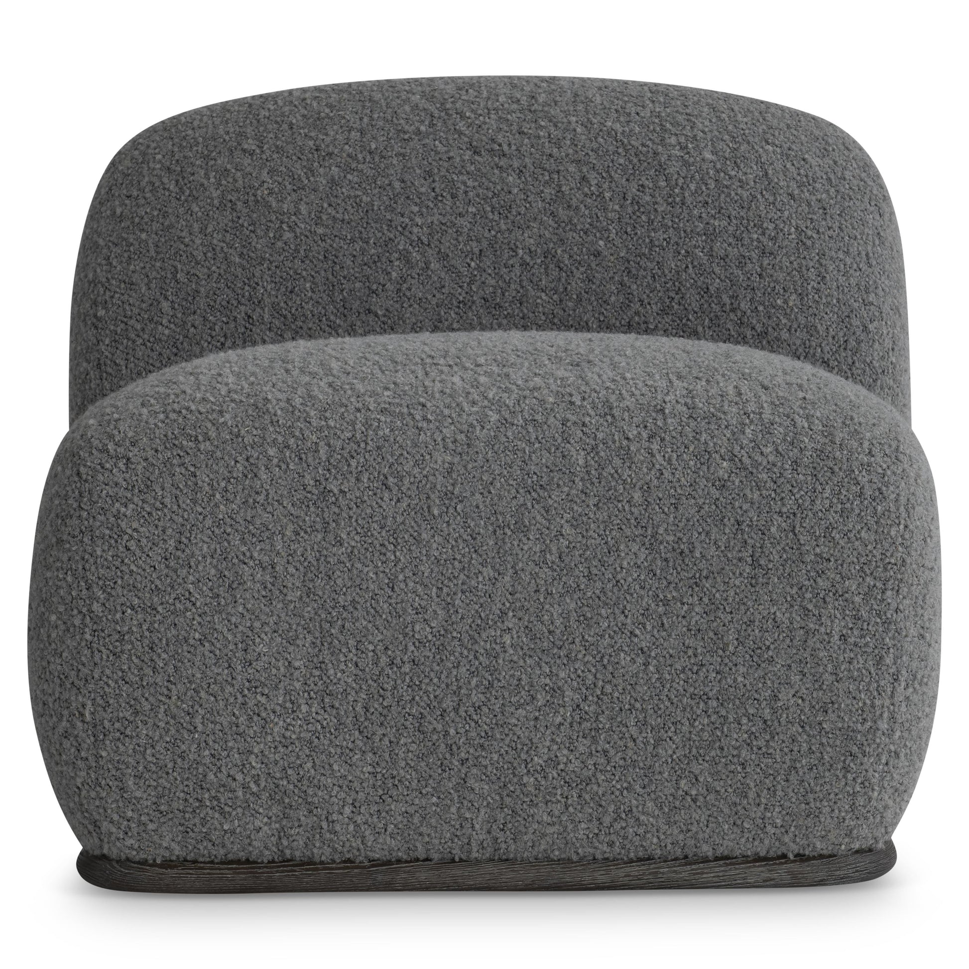 Designed for comfort as much as visual impact, the Billie offers deep seating wrapped in tailored fabric upholstery. A square swivel base sets this chair apart from traditional round designs, allowing smooth rotation while reinforcing its clean, modern edge. Finished with wood in a Porcini cerused finish, the chair delivers a refined statement from every angle.