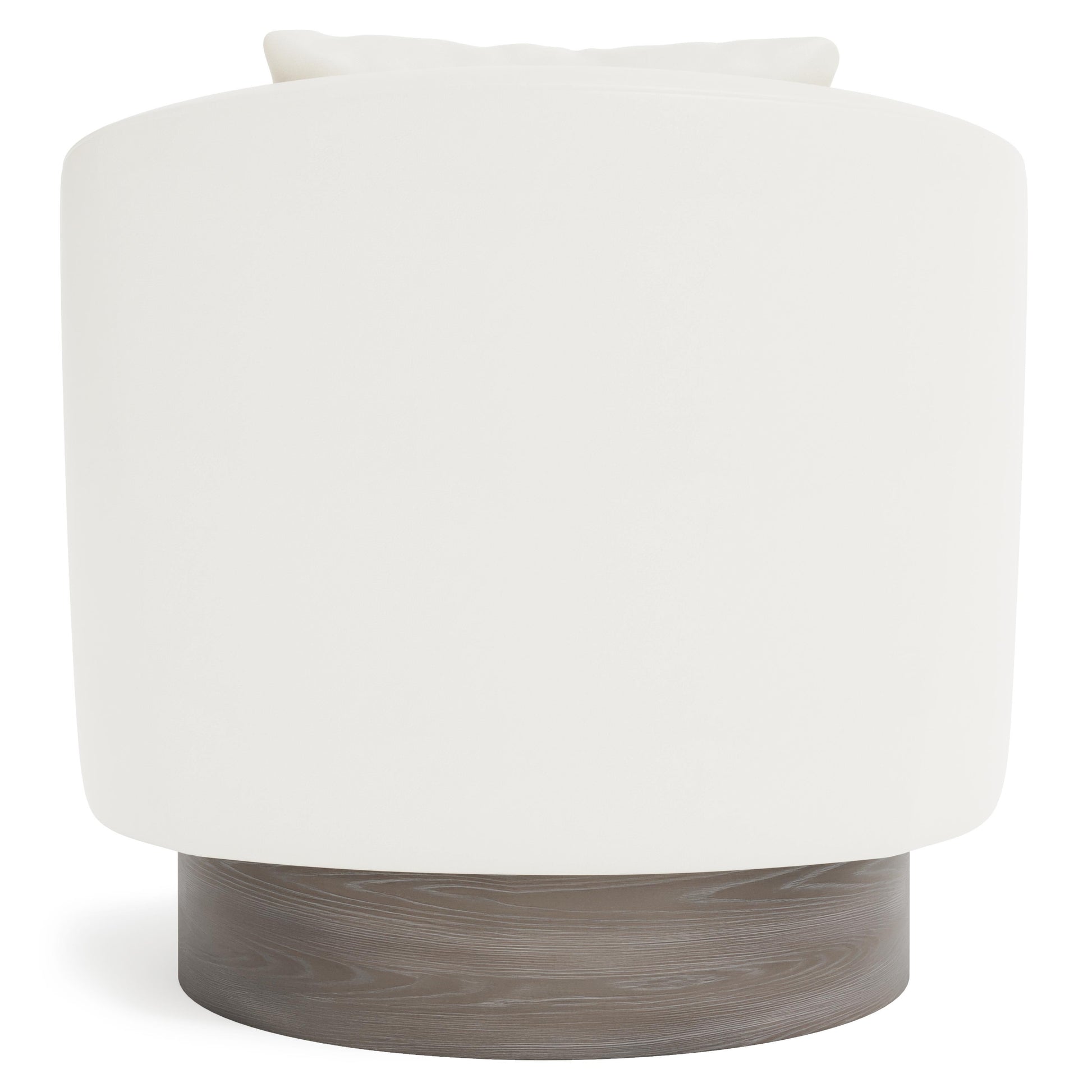 Designed for comfort as well as style, the seat features luxurious spring down cushioning that supports extended lounging. A wide, round wooden base grounds the design while discreetly housing the swivel mechanism, allowing the chair to turn with ease while maintaining a streamlined appearance. The result is an elegant accent chair that balances visual harmony with everyday functionality.