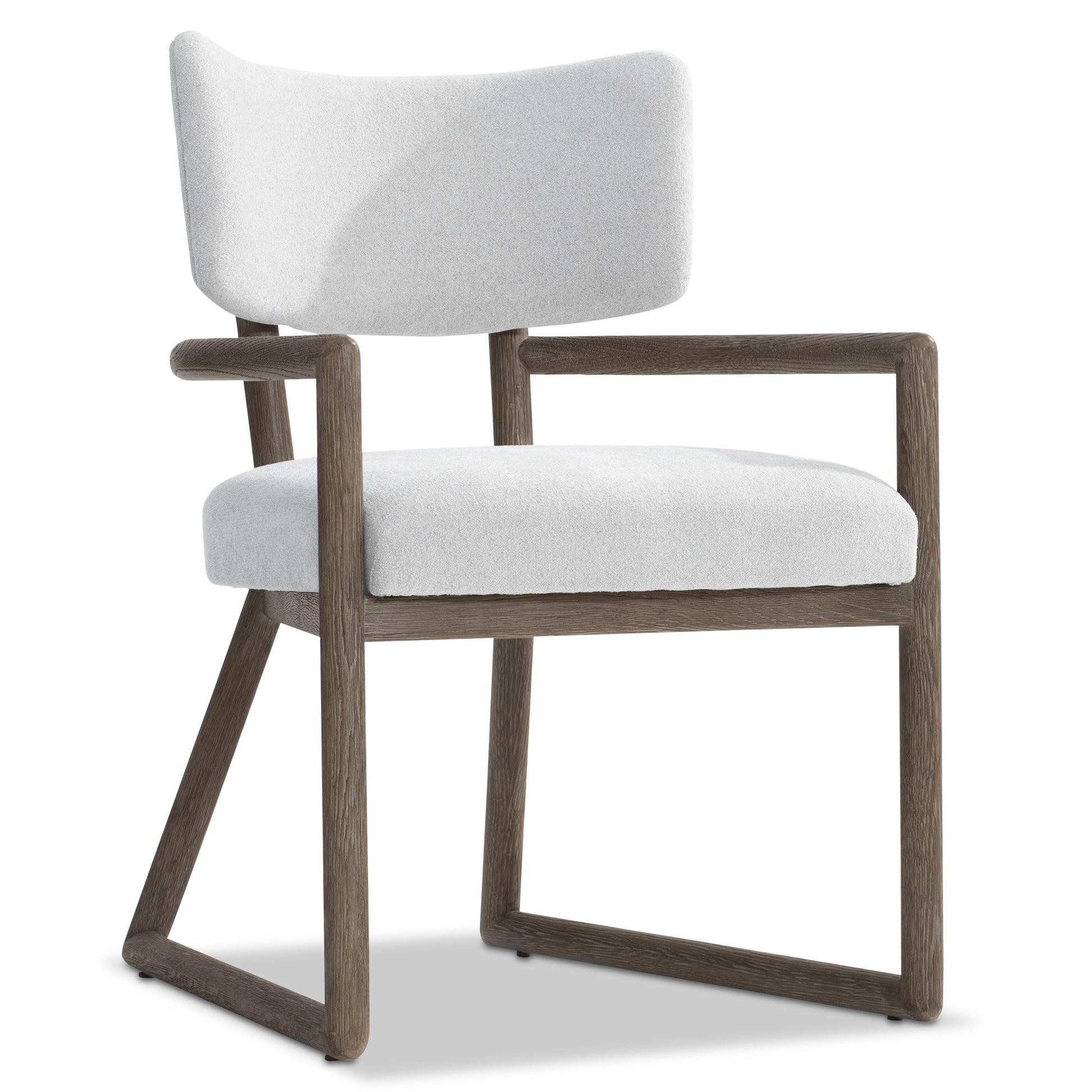 The Casa Paros Arm Chair presents a striking balance of geometry and softness, defined by its boldly shaped exposed wood frame. Finished in Playa, the sculptural frame creates a visual foundation that feels architectural yet inviting, giving the chair a refined presence within dining or accent seating spaces.