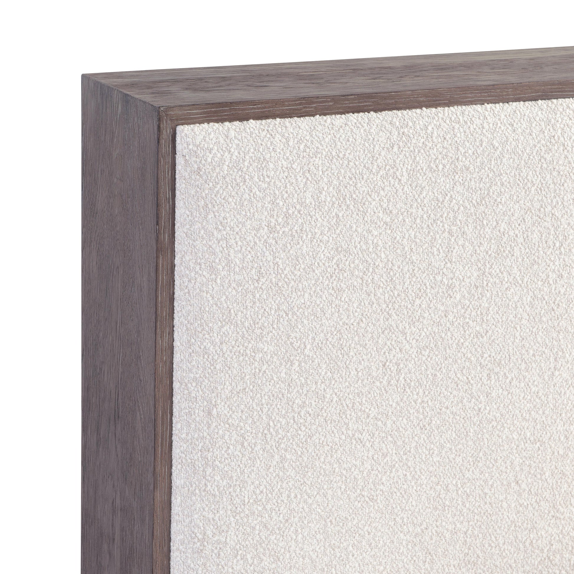 The Casa Paros Panel Bed presents a quietly luxurious presence, defined by a substantial wood frame that encloses softly upholstered panels on both the headboard and footboard. Finished in the warm Playa tone, the exposed wood lends depth and architectural balance, while the inset fabric panels introduce a tactile contrast that feels both relaxed and refined.