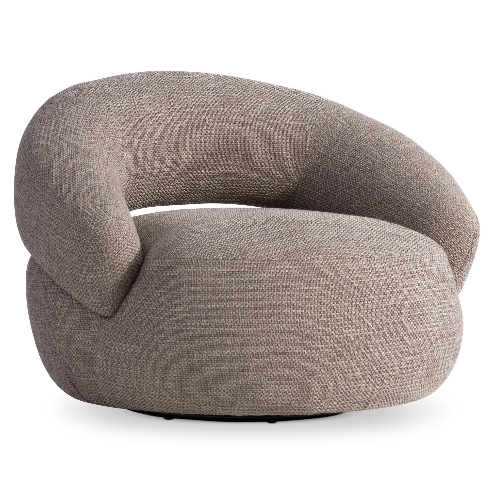 Designed for deep comfort, the Cleo features a curved seat that flows seamlessly into a smooth swivel base, encouraging relaxed lounging and effortless movement. Upholstered in fabric with a tailored tight back, this swivel chair balances softness with structure, making it an elegant accent for living rooms, bedrooms, or reading spaces where comfort and style are equally important.