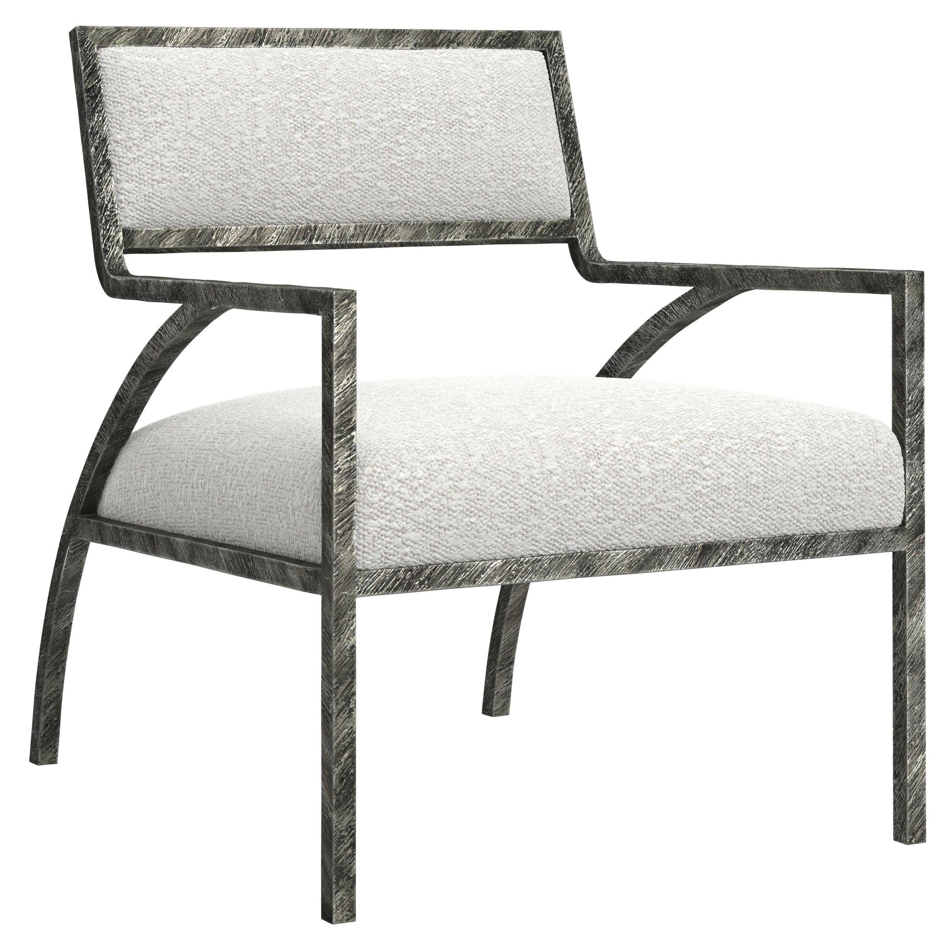 Striking a confident balance between modern refinement and industrial edge, the Cohen Fabric Chair is defined by its sweeping geometric silhouette. A deeply textured black cast iron frame anchors the design, introducing visual weight and architectural presence while maintaining a clean, contemporary profile.