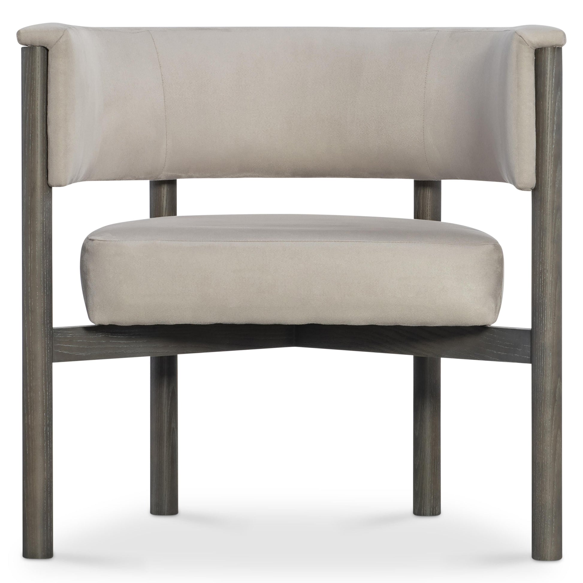 The Corbin Fabric Chair presents a refined modern silhouette defined by its distinctive shelter back, which folds gracefully over the wood frame. This tailored gesture creates a sense of architectural depth while softening the overall profile, allowing the chair to feel both structured and inviting.