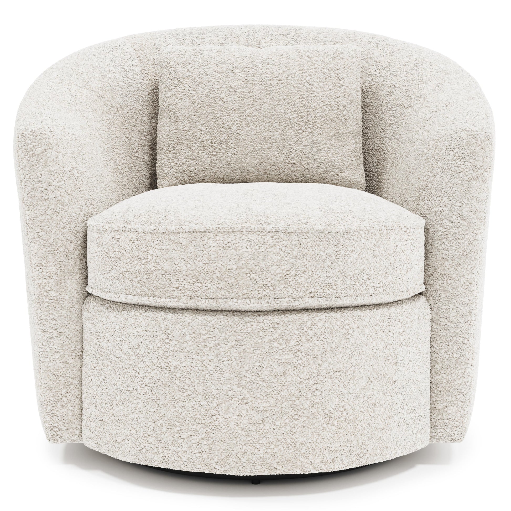 - Classic barrel-style swivel chair with a chic, modern profile