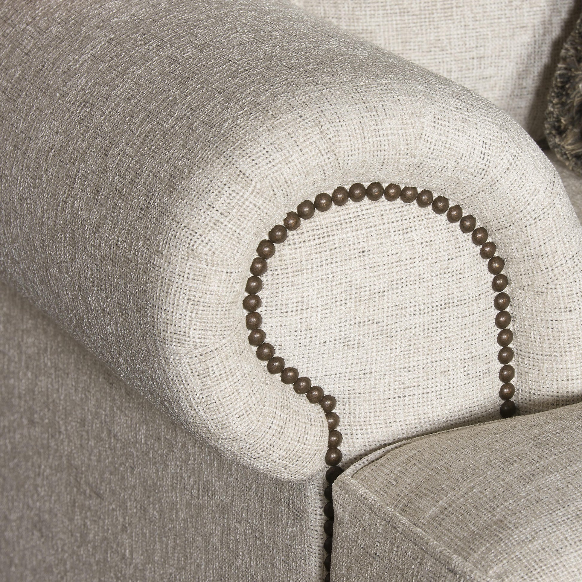 - Rolled arms accented with #6 antique brass nailhead trim