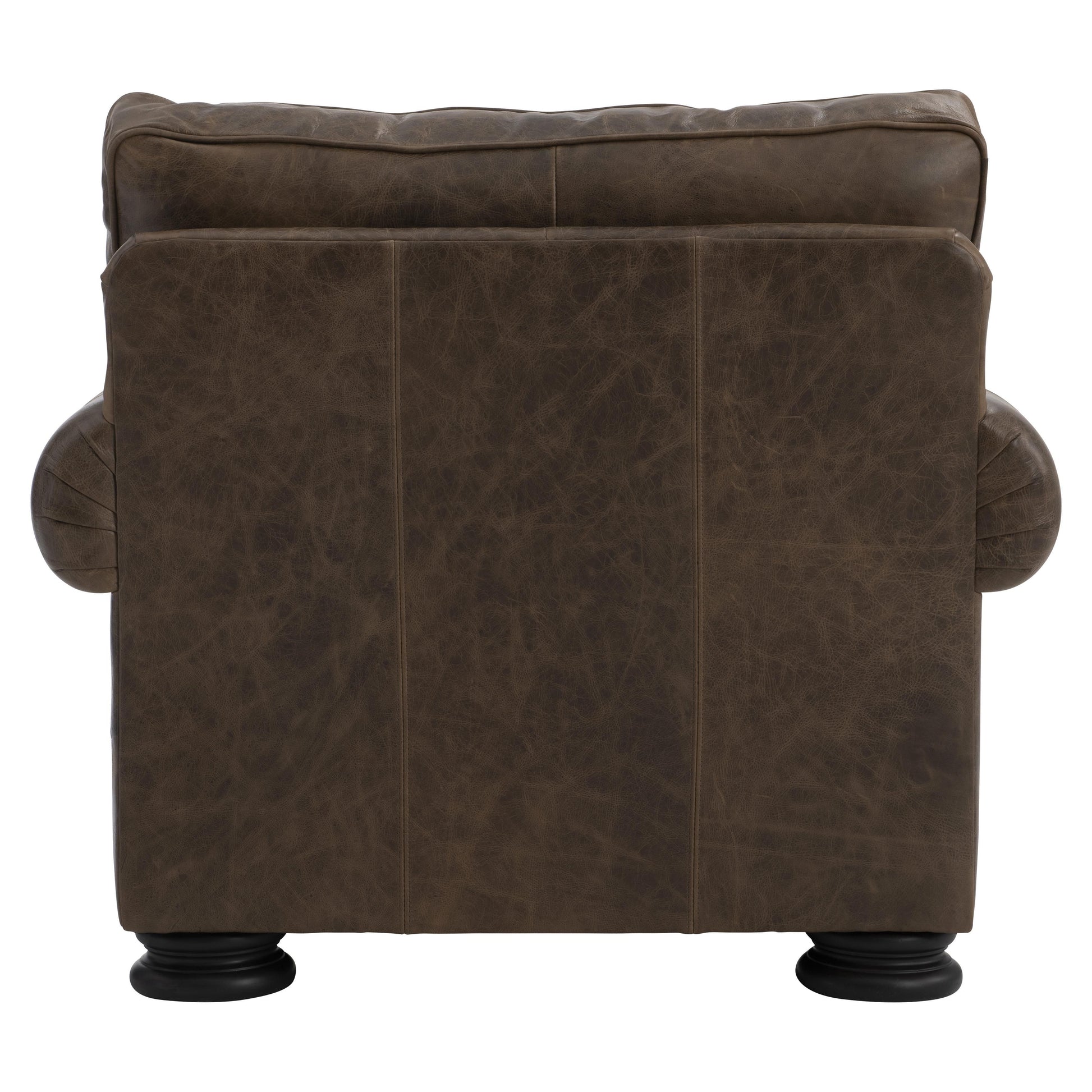 The Foster Leather Chair brings a refined sense of tradition to the living space through its generous scale and classic detailing. Designed with an elegant silhouette, this accent chair features rolled arms, a tailored box-edge pillow, and carefully placed nailhead trim that adds depth and visual distinction. The use of quality leather enhances its timeless appeal while lending a rich, sophisticated presence.
