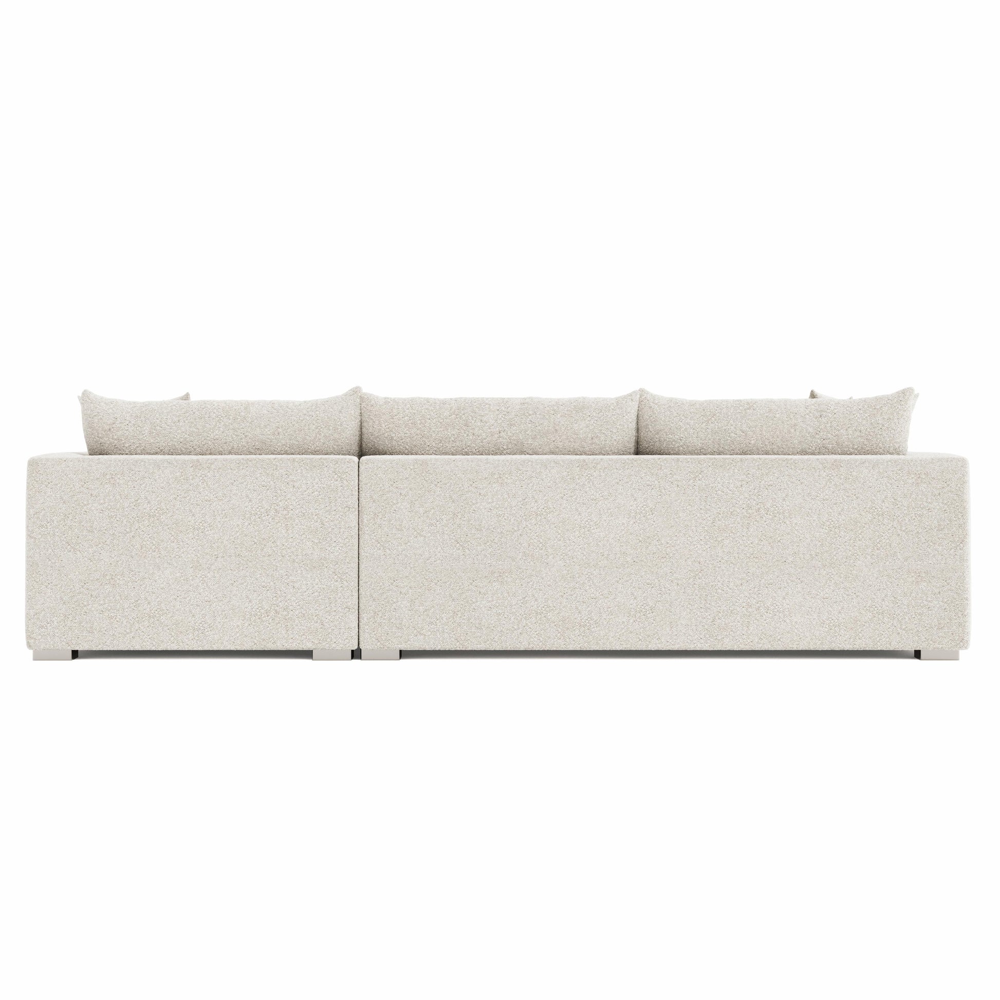 The Helena Fabric Sectional presents a relaxed modern silhouette defined by generous proportions and a clean, architectural profile. Oversized track arms and a low stance create a grounded, contemporary presence, while brushed stainless steel feet introduce a refined metallic contrast that elevates the design.