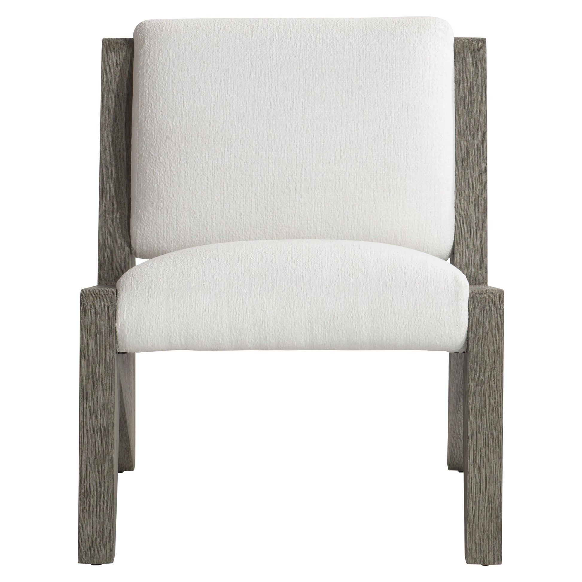 The Hermosa Outdoor Chair presents a distinctly modern silhouette, where sharp architectural angles meet the ease of plush comfort. A sculptural teak frame defines the form, finished in a Weathered Teak tone that brings warmth and depth to contemporary outdoor spaces. The clean-lined base creates a striking visual foundation while allowing the cushions to appear effortlessly suspended between the arms.