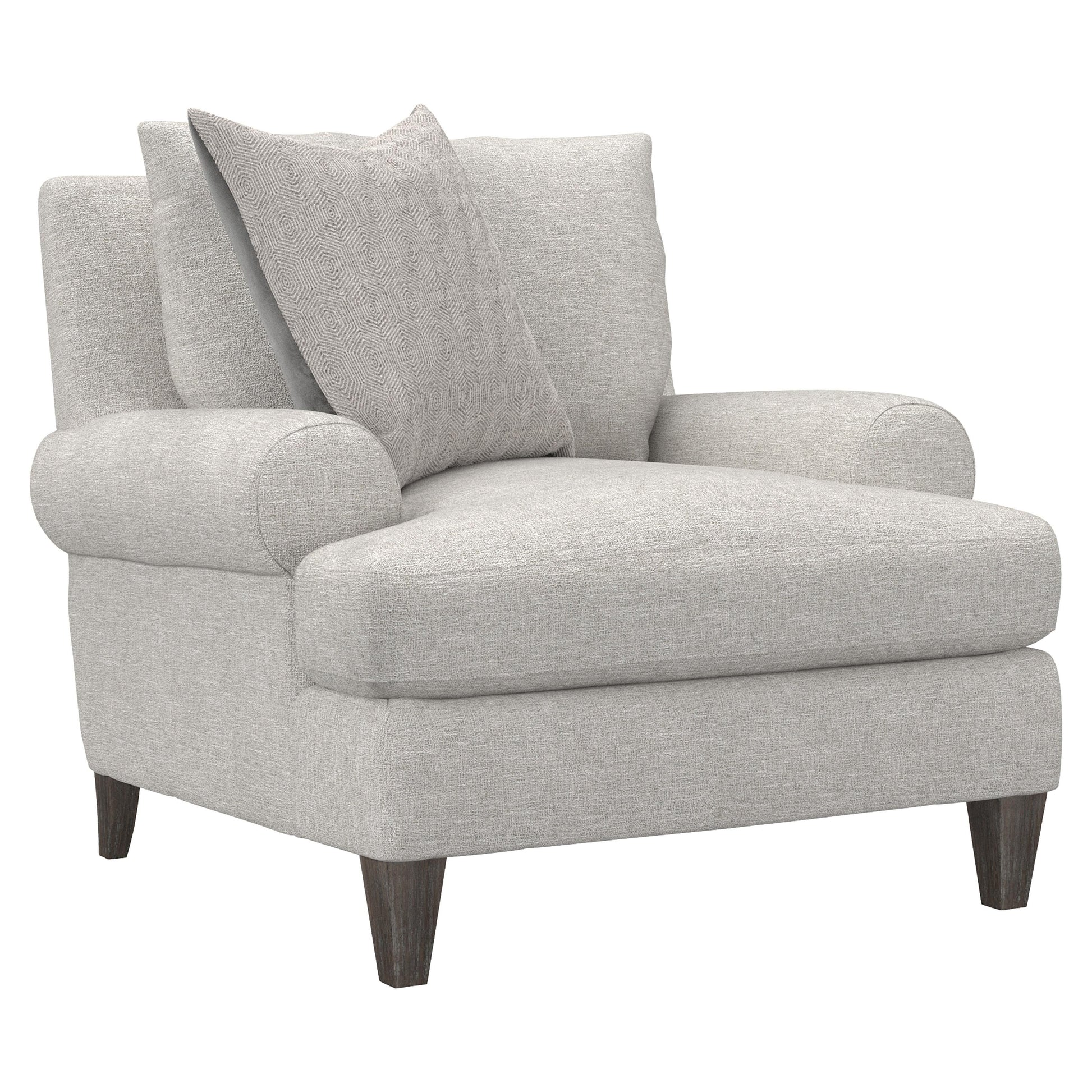 Thoughtful details elevate the comfort and style, from knife-edge pillows to tapered wood feet finished in Portobello. Upholstered in fabric and paired with a coordinating throw pillow, the Isabella chair balances softness and structure, offering everyday comfort with a polished, timeless presence.