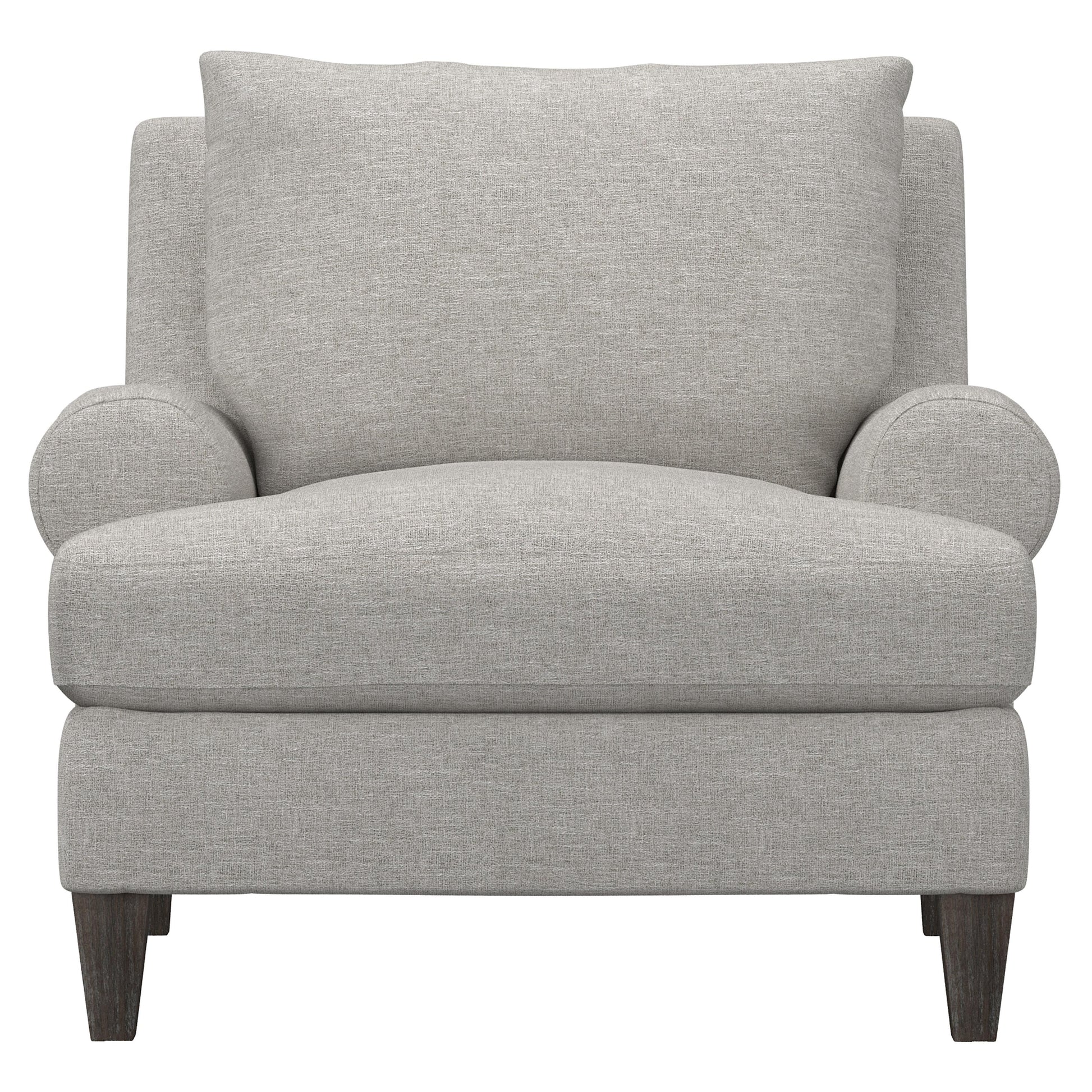 The Isabella Fabric Chair presents a relaxed interpretation of transitional design, blending a casual silhouette with gracious scale. Rolled arms and deep, plush seating create an inviting profile, while tailored upholstery keeps the look refined and composed. The chair’s proportions are generous without feeling oversized, making it an easy anchor for both living rooms and sitting areas.
