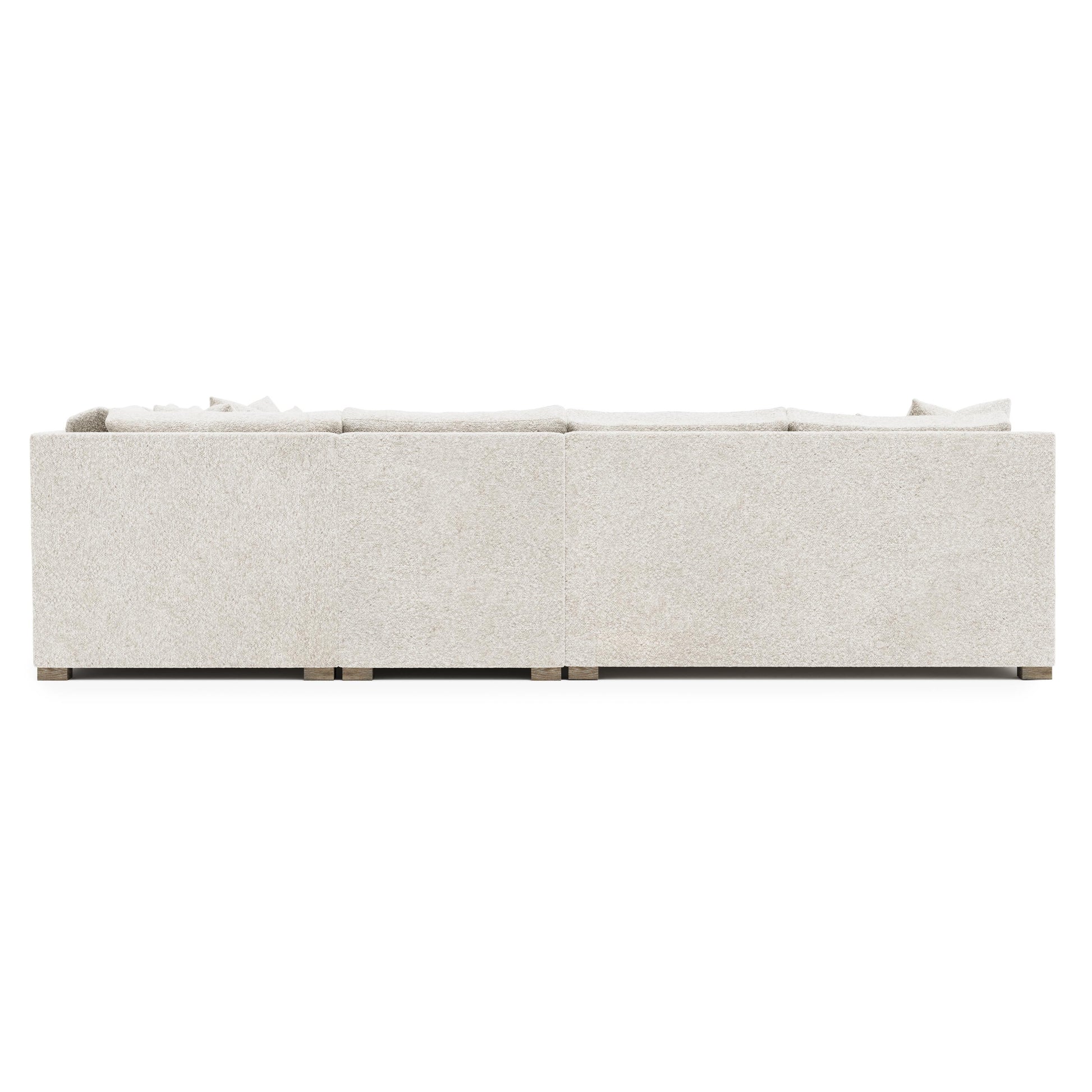 Designed for relaxation as much as style, the sectional features plush down seat cushions paired with supportive fiber back cushions, softening its architectural form. Upholstered in a coordinated fabric across the body and accent pillows, the Kelsey sectional delivers a cohesive look while offering ample room for lounging, gathering, and everyday living.