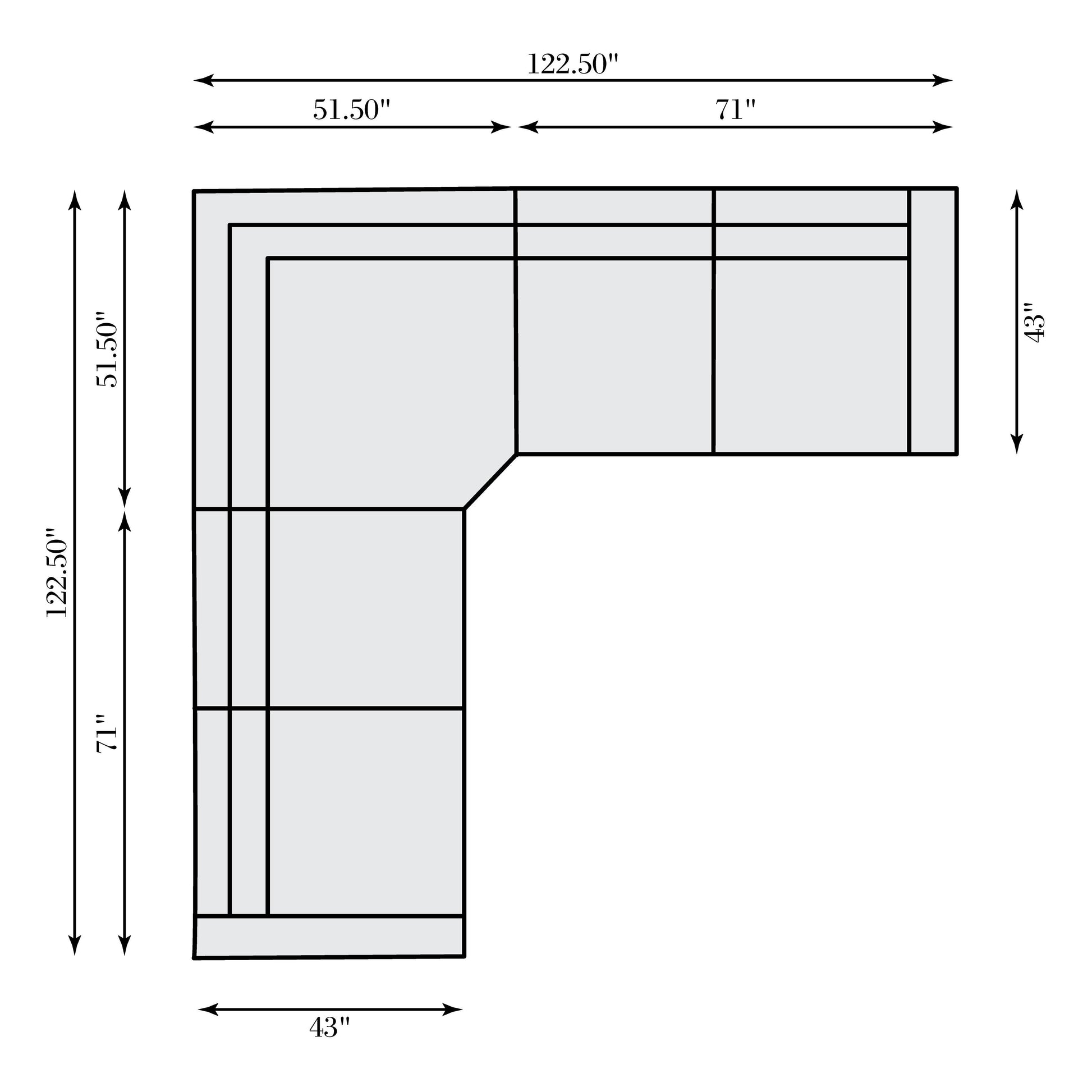 Width: 122.5 in | Depth: 122.5 in | Height: 32.5 in