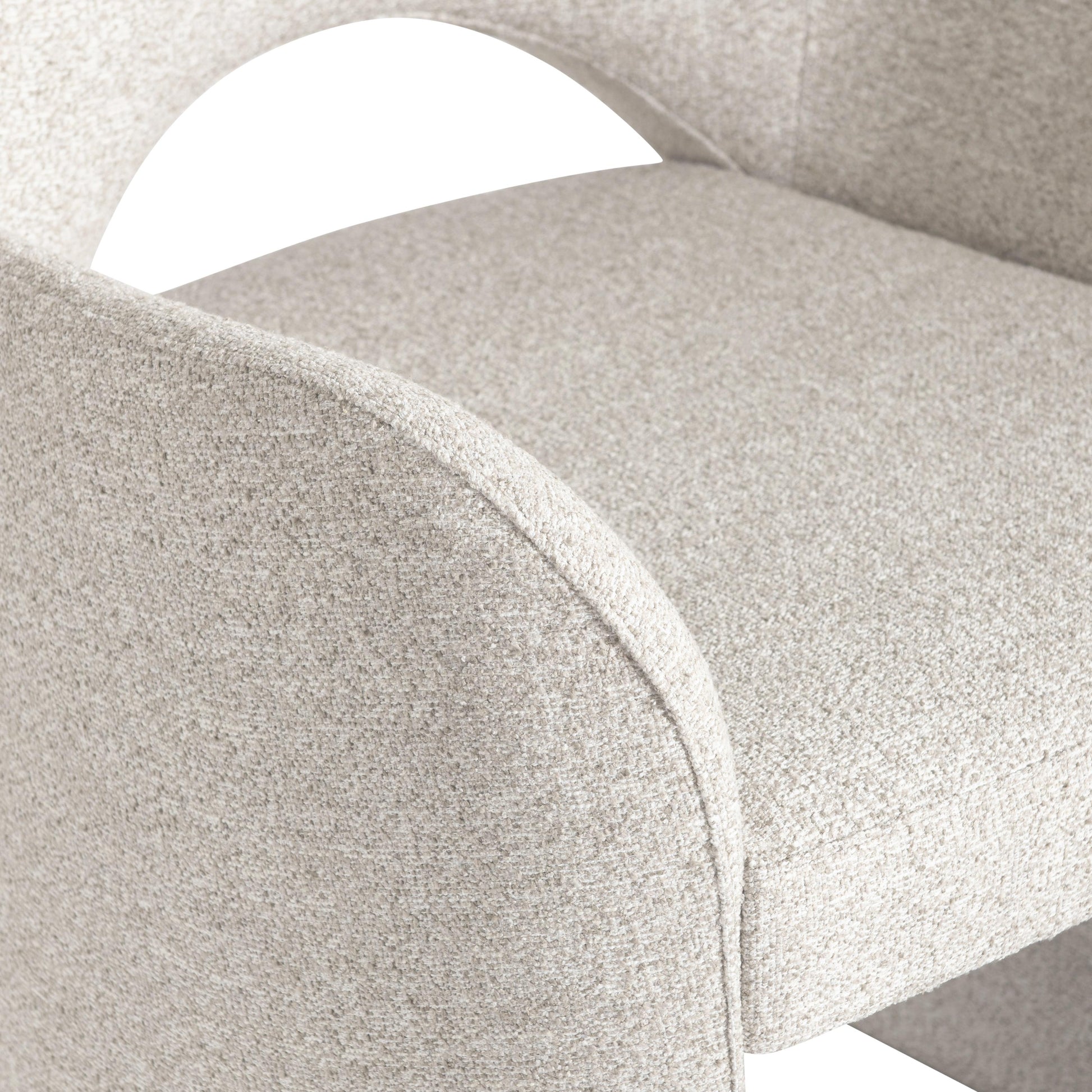 The Loggia arm chair introduces a sculptural perspective on modern seating, defined by fluid curves that move seamlessly from back to arm. A distinctive shelter-style back wraps gracefully to form the sides, creating an inviting silhouette that feels both architectural and soft. An open curve at the back lends visual lightness, allowing the form to appear airy despite its generous presence.
