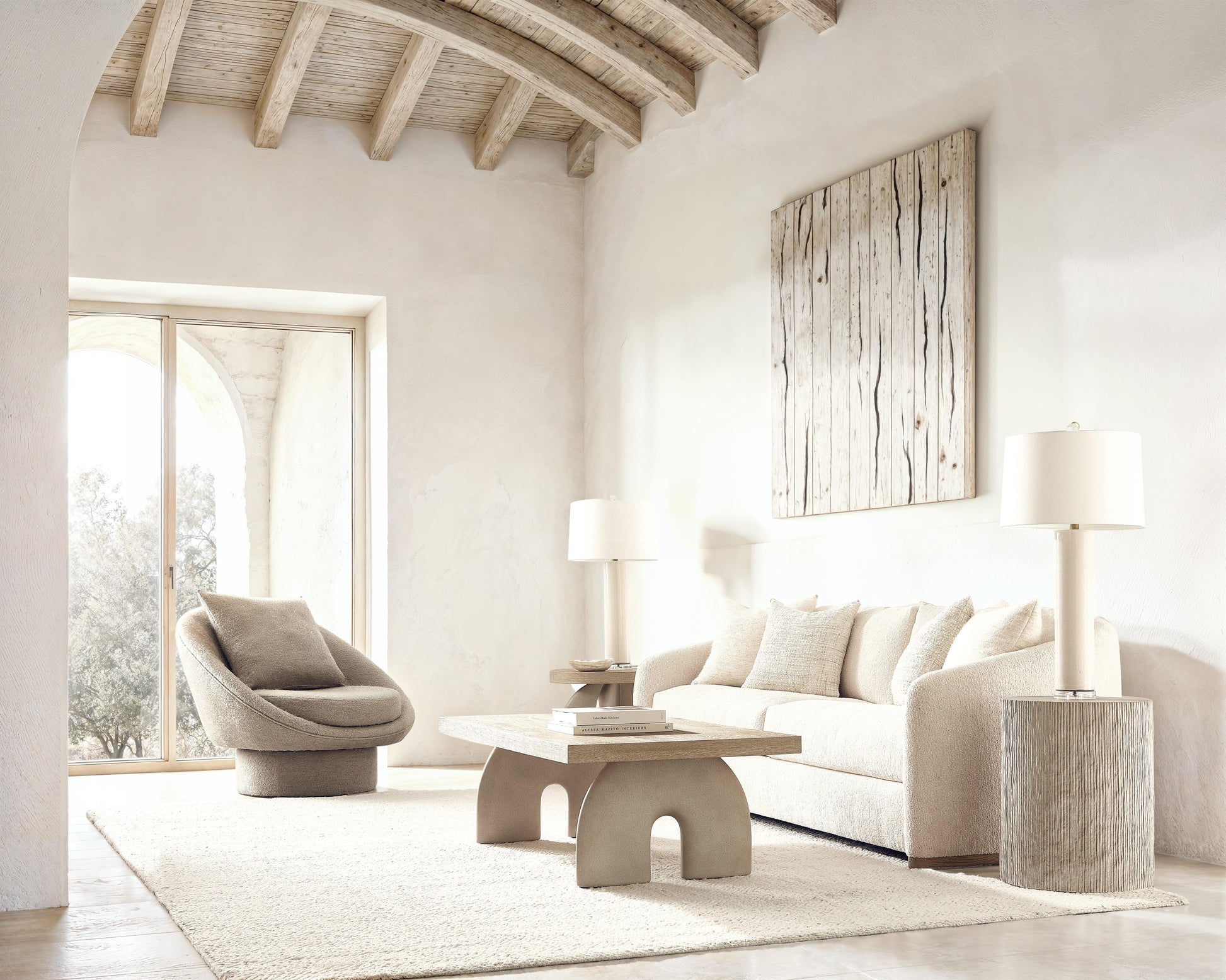 Designed for everyday comfort as much as visual impact, the Lucia features a deep seat cushion and a plush back pillow that encourage relaxed lounging. A smooth 360-degree swivel adds effortless functionality, allowing the chair to turn with ease while maintaining its composed, fully upholstered form.