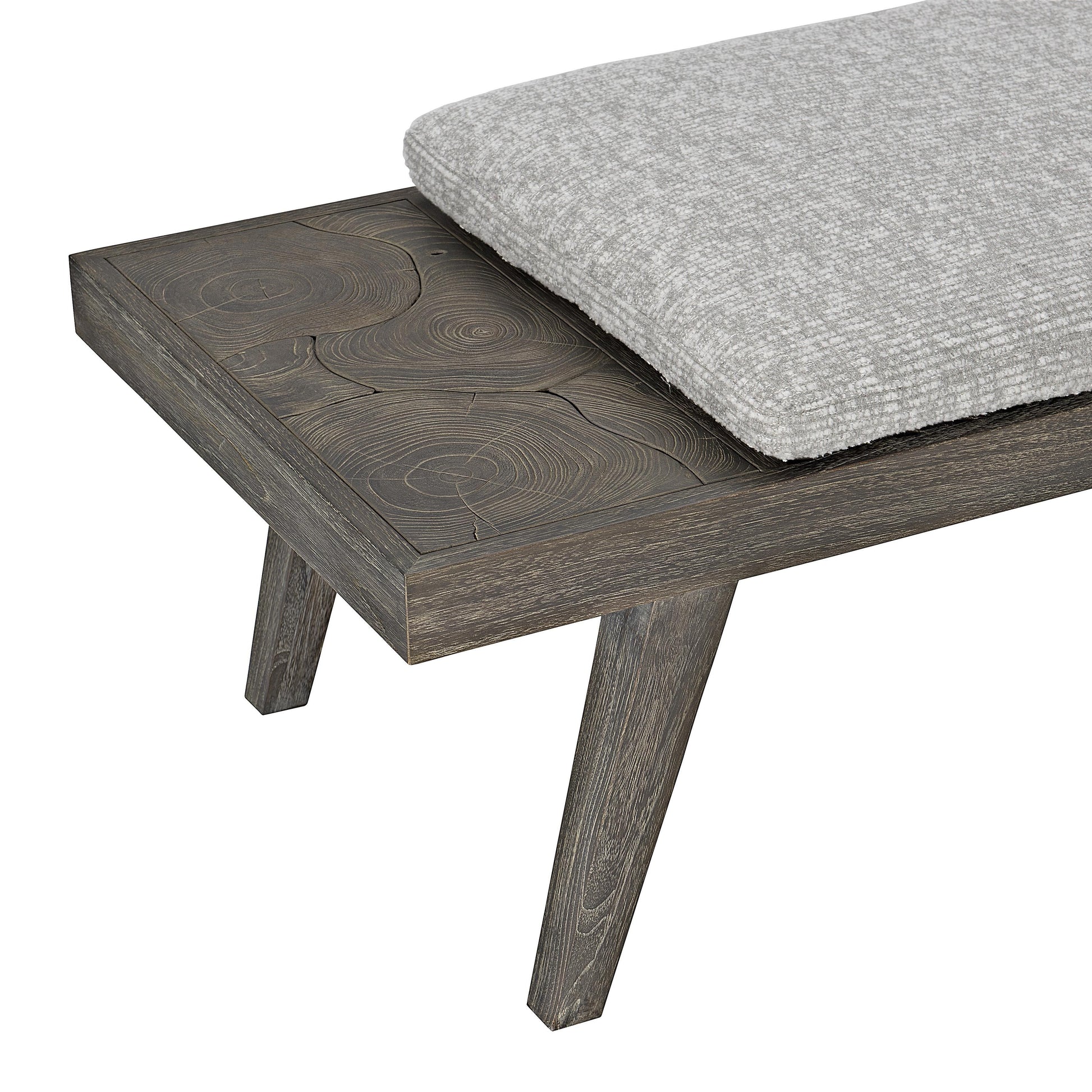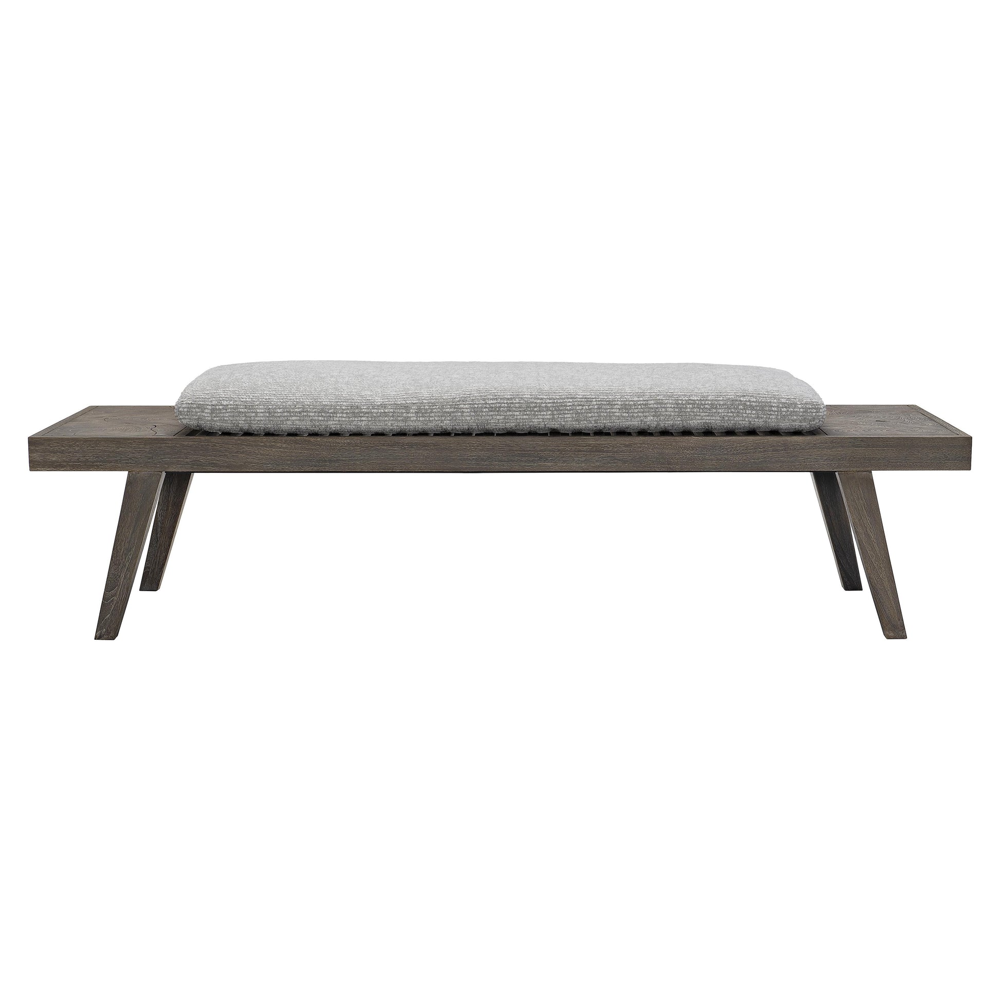 Crafted from solid carbonized teak and finished in Smoked Truffle, the bench is naturally durable and well suited for exterior environments. The open slatted construction allows air and light to pass through, enhancing comfort and longevity. An optional fabric pad offers added softness without compromising the clean-lined aesthetic, making the Madura Bench as functional as it is visually striking.