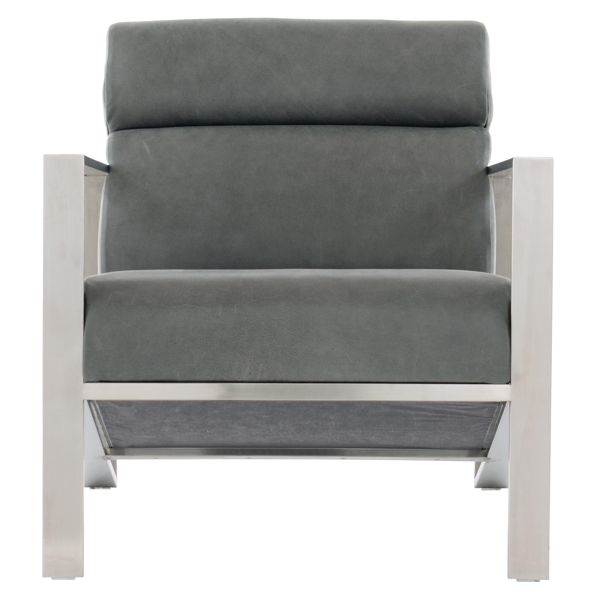 Striking and contemporary, the Marco Leather Chair is defined by its architectural presence and refined material contrast. A sleek stainless steel frame in a brushed finish creates a crisp silhouette, while angled arms introduce a distinctive, modern edge. The design feels both sculptural and precise, making a bold statement in sophisticated living spaces.