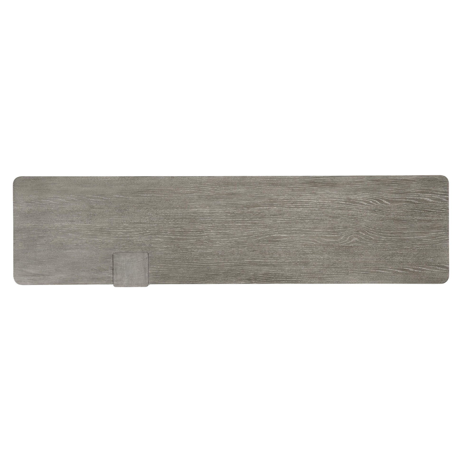 Crafted from wirebrushed oak in a rich Puma finish, the surface treatment enhances the natural grain and adds depth to the wood’s character. Designed for both visual impact and everyday function, the credenza features an open center for media components and concealed storage behind a push-to-open door. Thoughtful details such as integrated ventilation, grommets, and adjustable shelving make it well suited for use with a television while maintaining a sleek, uncluttered appearance.