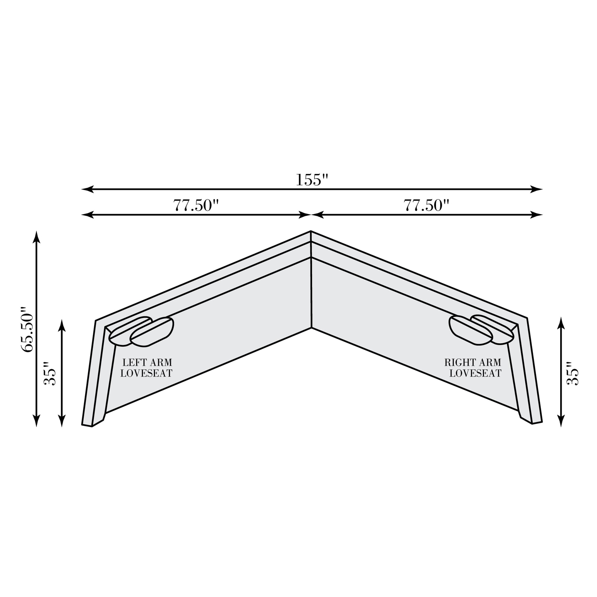 - Configuration shown includes left arm and right arm loveseats