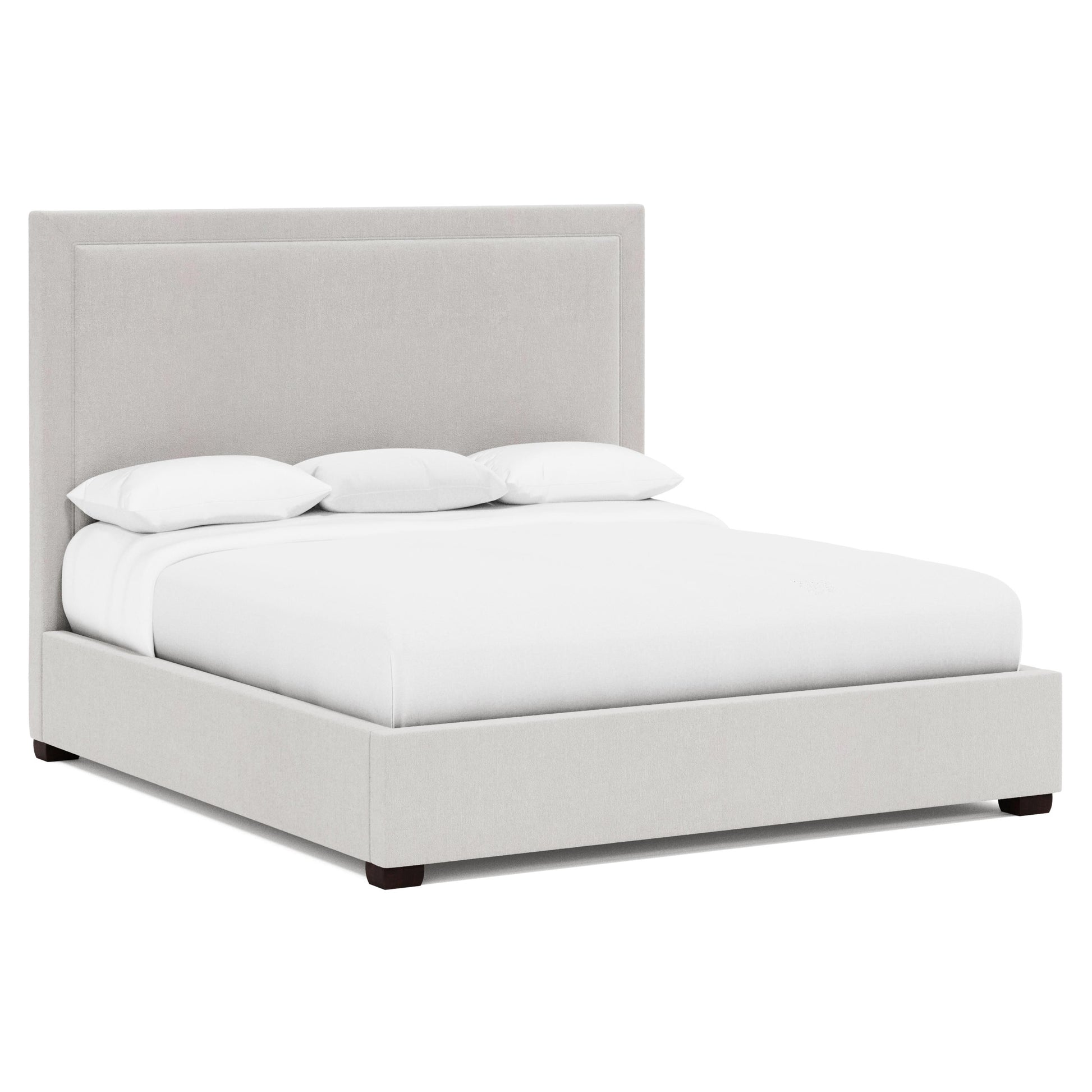 The Morgan Fabric Panel Bed brings polished transitional style to the bedroom through a balance of tailored detailing and relaxed comfort. A fully upholstered headboard features a picture-frame design, subtly elevating the silhouette while creating a refined focal point. Optional nailhead trim traces the headboard frame, adding a touch of craftsmanship without overwhelming the clean lines.