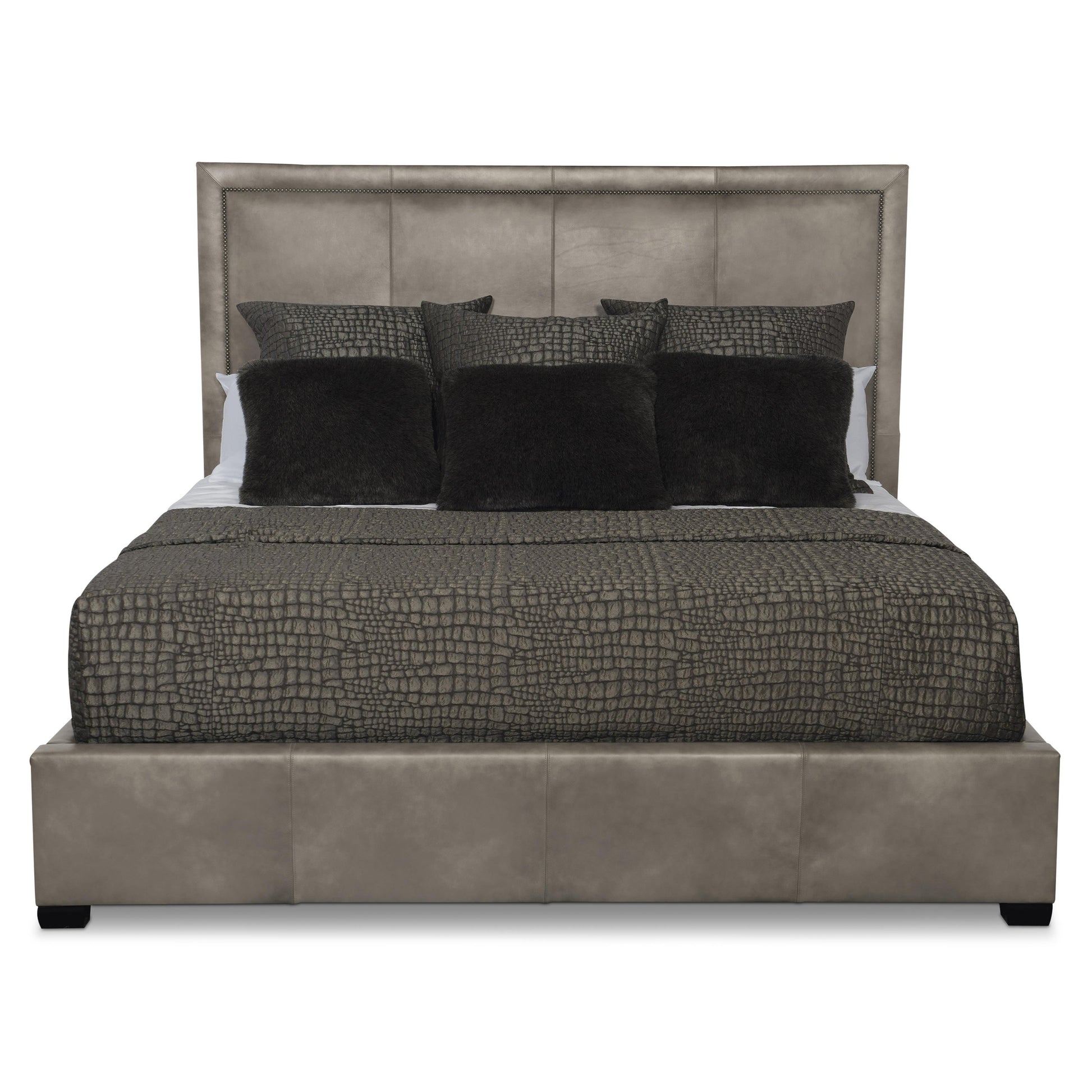 The Morgan Leather Panel Bed introduces an elegant transitional presence to the bedroom, blending tailored upholstery with refined architectural detailing. A fully upholstered, picture‑framed headboard creates a polished focal point, while the optional nailhead trim adds a subtle layer of definition and craftsmanship. The design feels sophisticated yet relaxed, making it equally suited to classic and contemporary interiors.