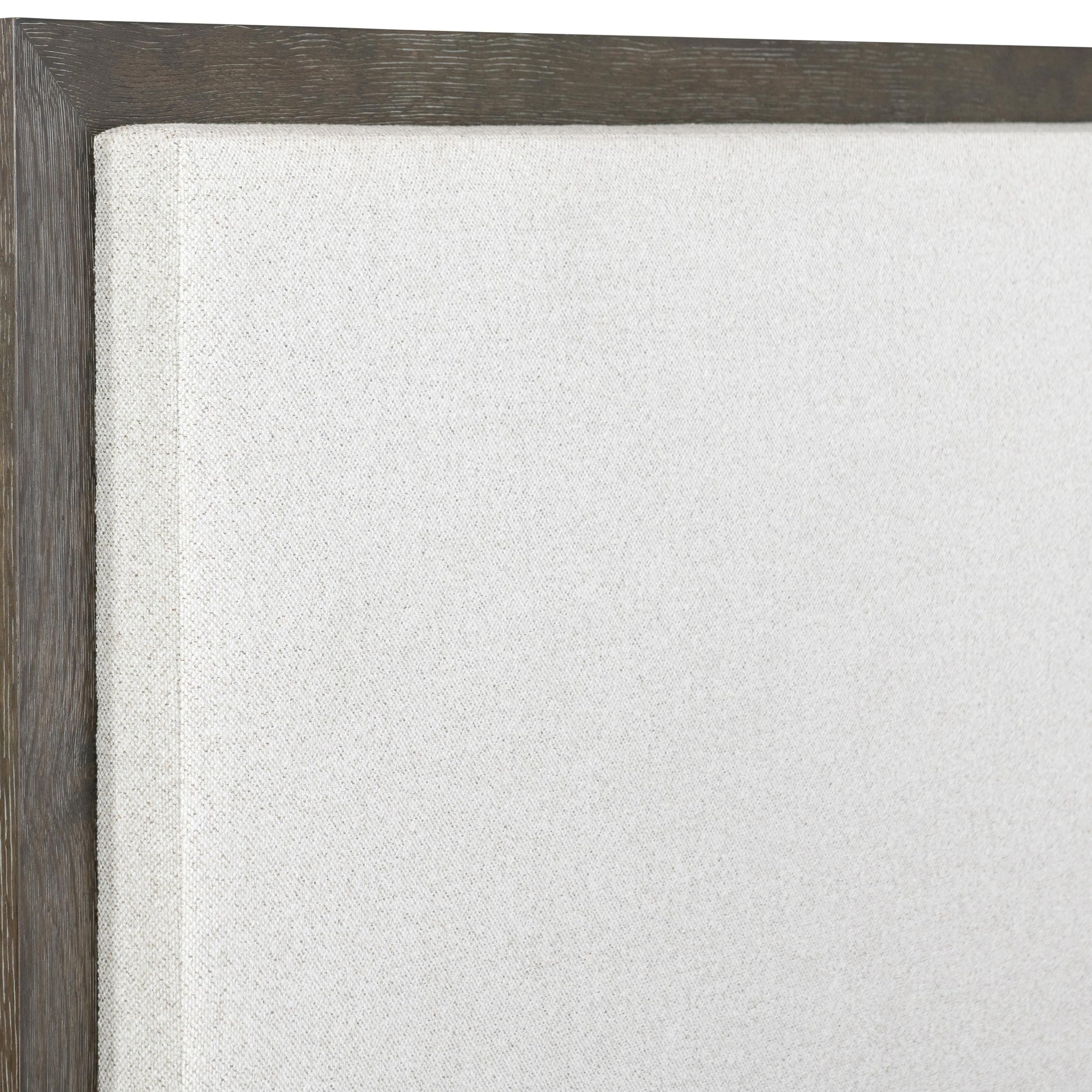 The Outline Panel Bed King presents a confident architectural profile defined by clean lines and rich texture. Deeply wire-brushed oak forms a bold frame, finished in Cassel to emphasize the wood’s natural character. The headboard introduces a refined layer of comfort with a raised, upholstered panel that softens the look while maintaining a tailored, modern presence.