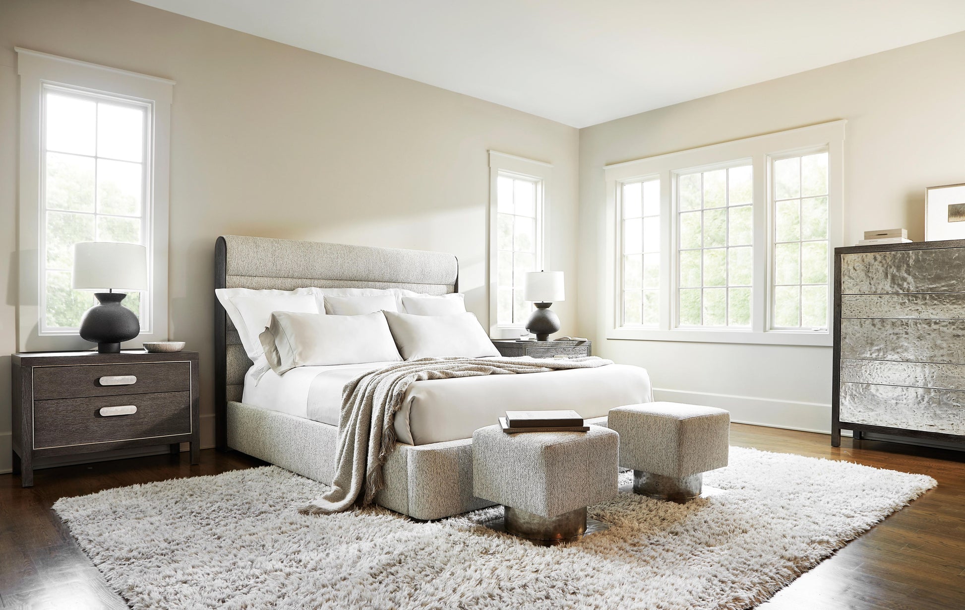The Prado Panel Bed brings tailored sophistication to the bedroom with a commanding presence and refined detailing. Deep channels define the upholstered headboard, creating visual rhythm and depth, while wood panel accents in the Porcini finish frame the design with warmth and contrast. The combination of fabric and wood delivers a modern yet timeless aesthetic that feels both architectural and inviting.