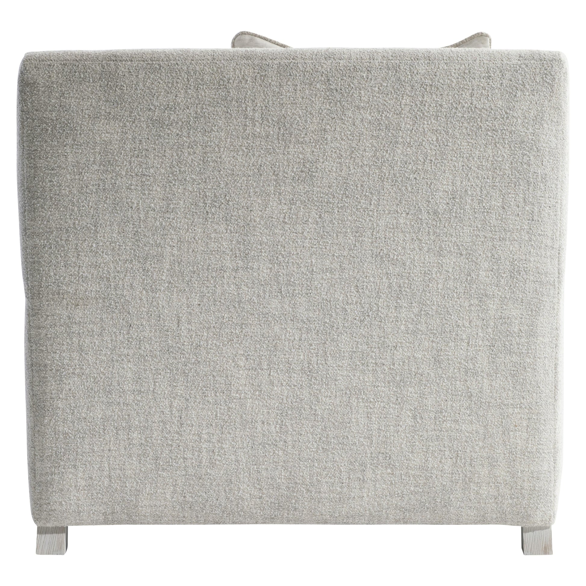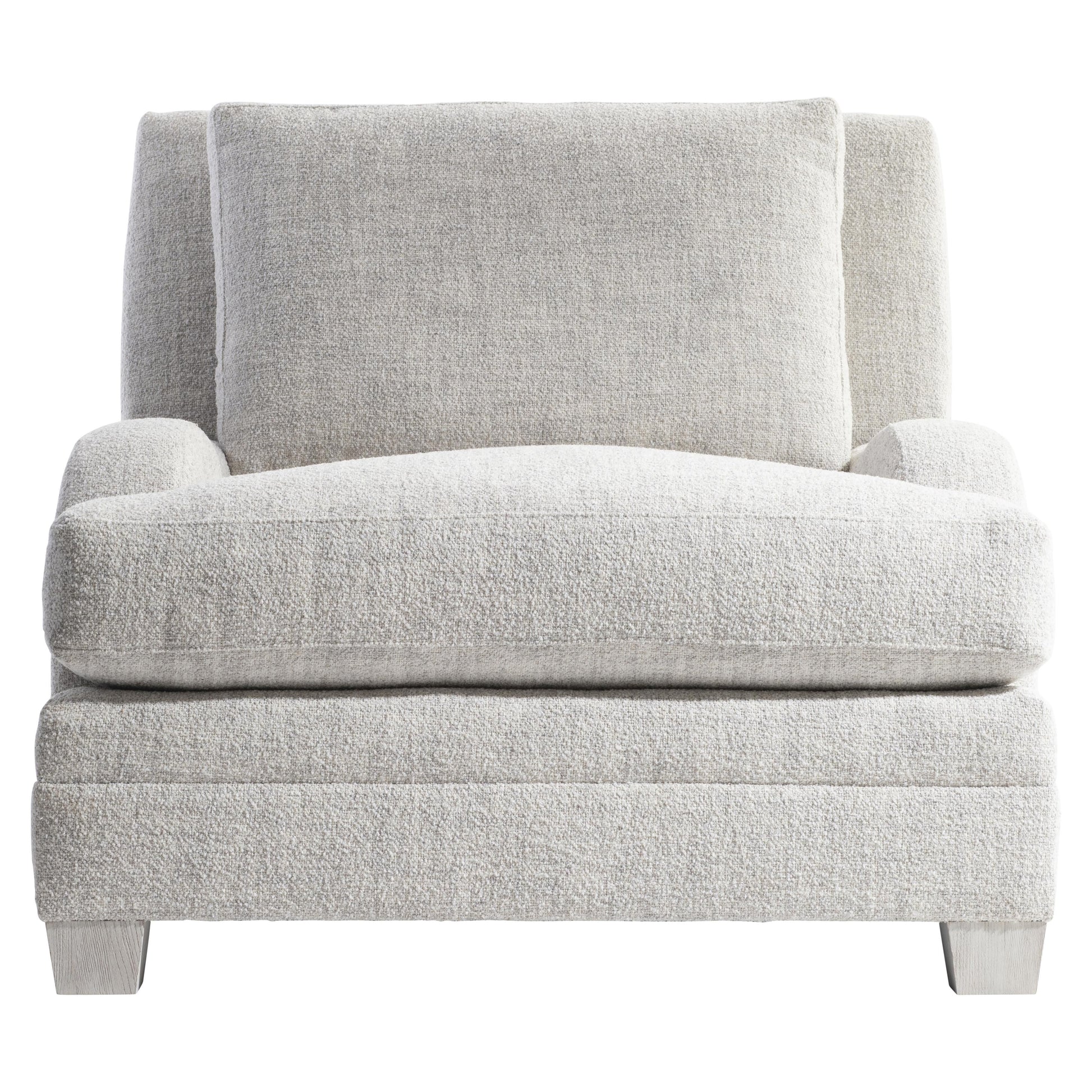 Upholstered in fabric and grounded by block feet in a Weathered Bone cerused finish, the Rollins chair offers a warm, textural presence that complements a range of interiors. Its considered proportions and layered pillows make it ideal for living rooms or reading spaces where comfort and style are equally essential.