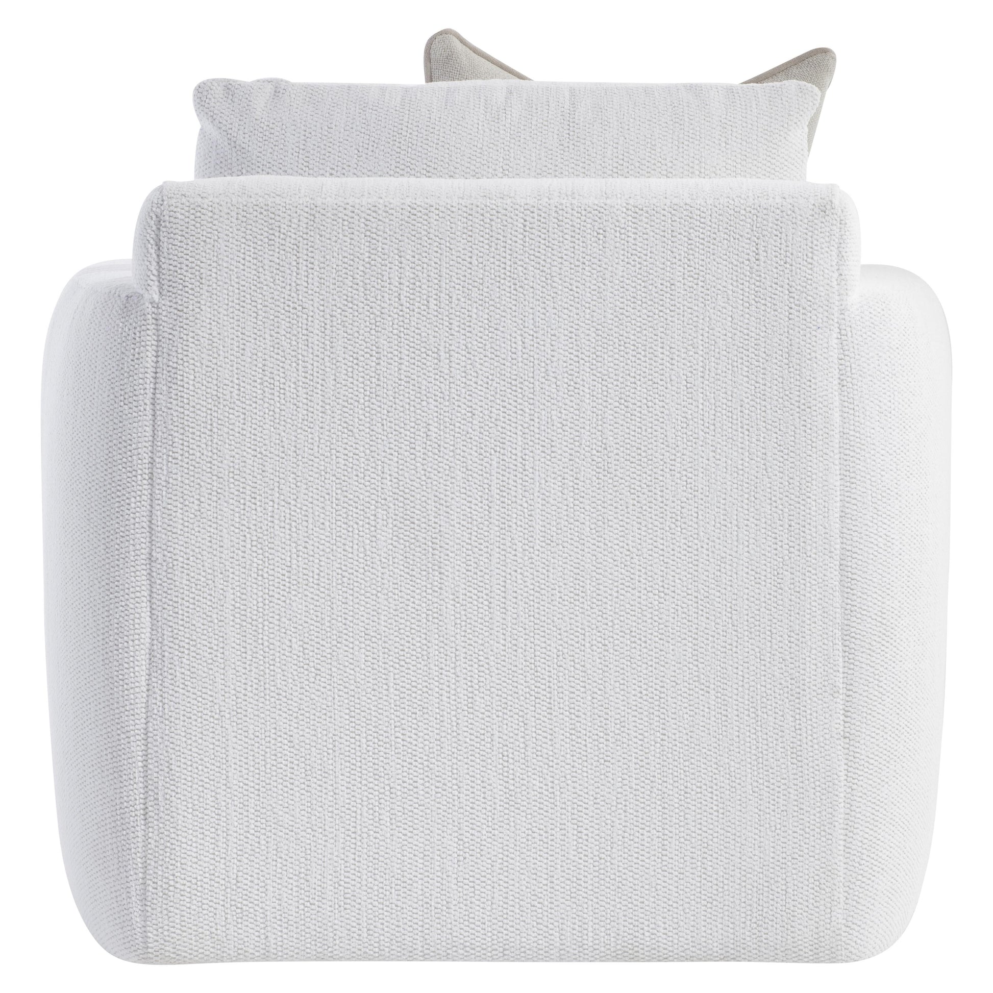 A deep seat cushion is paired with a knife-edge back pillow and a curated accent pillow, offering relaxed support and layered comfort. Designed for effortless versatility, the smooth swivel base allows a full 360-degree rotation, making the Rory chair ideal for conversational living spaces where flexibility and style are equally important.