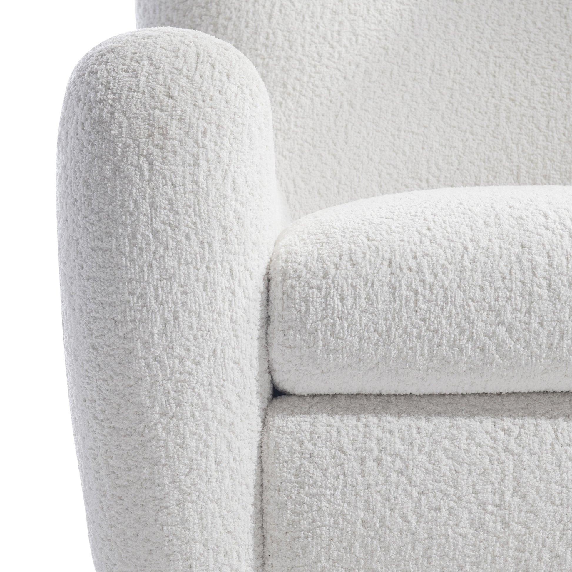 The Silvi Fabric Swivel Chair makes an immediate statement with its sculptural silhouette and enveloping comfort. A curvaceous form defines the design, as generously rounded arms flow seamlessly into a grounded base. The backrest dips and rises in a subtle rhythm, creating visual movement while enhancing ergonomic support.