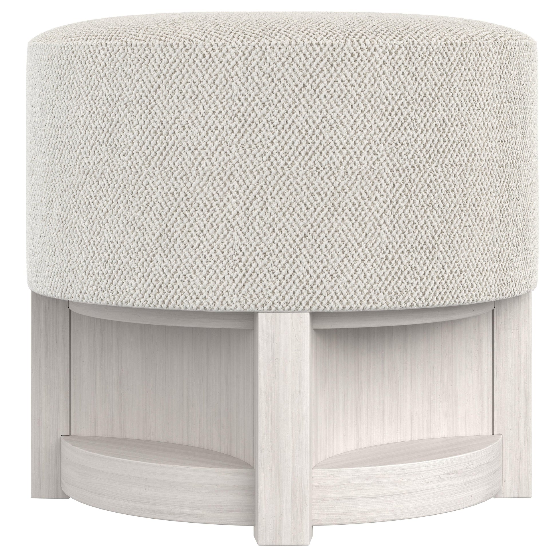 Above, a round upholstered seat wraps the top and sides in fabric B581, offering a tailored profile and inviting comfort. Equally suited for use at the foot of a bed, as an accent in a living space, or as flexible seating, the Stratum Bench blends form and function with an elevated, contemporary sensibility.