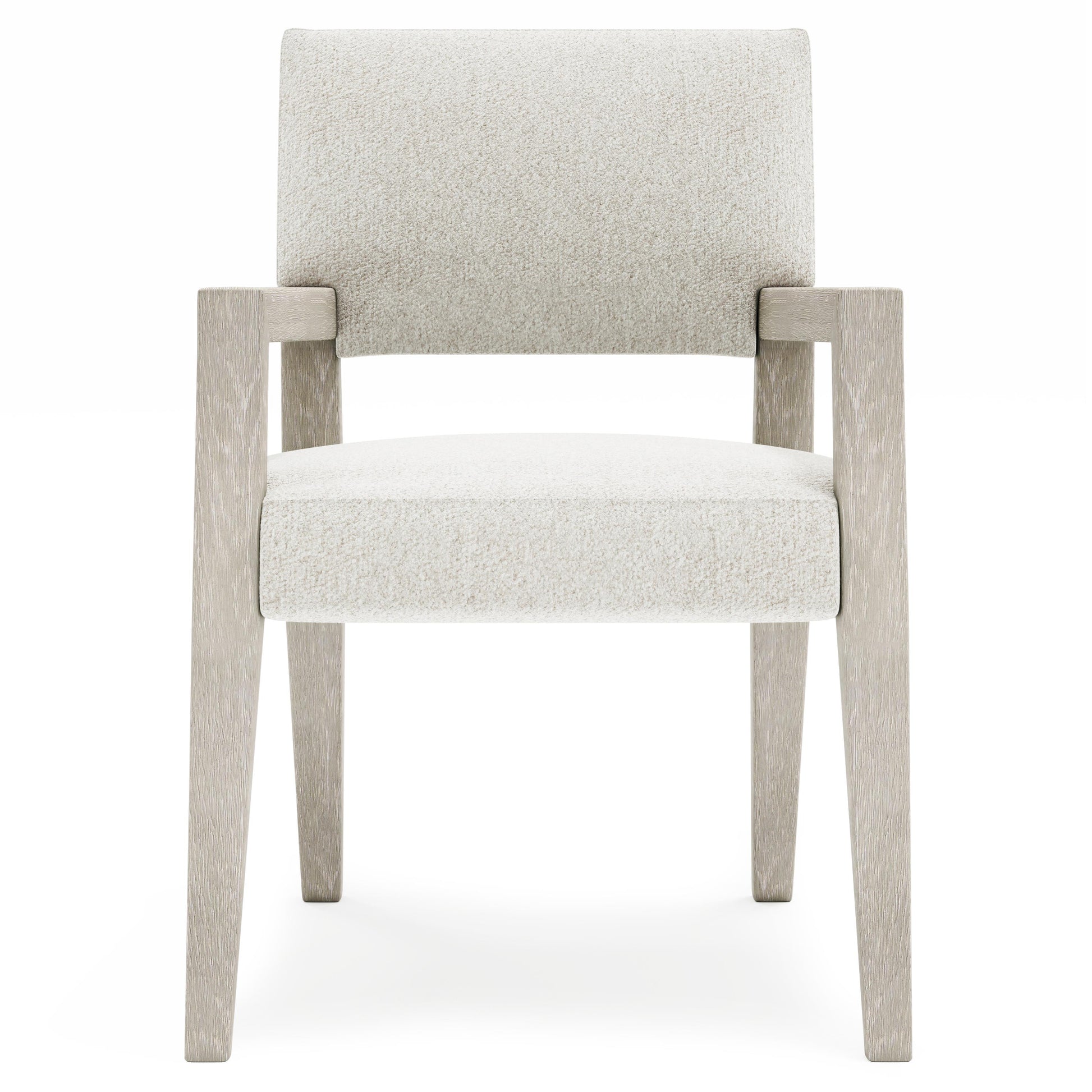 Crafted with wirebrushed oak in a Larza finish, the chair’s frame brings natural texture and warmth to its refined form. An interlocking back integrates seamlessly into the wood structure, offering both visual continuity and support. A generously scaled seat enhances comfort, making the Tempo Arm Chair as inviting as it is precise.