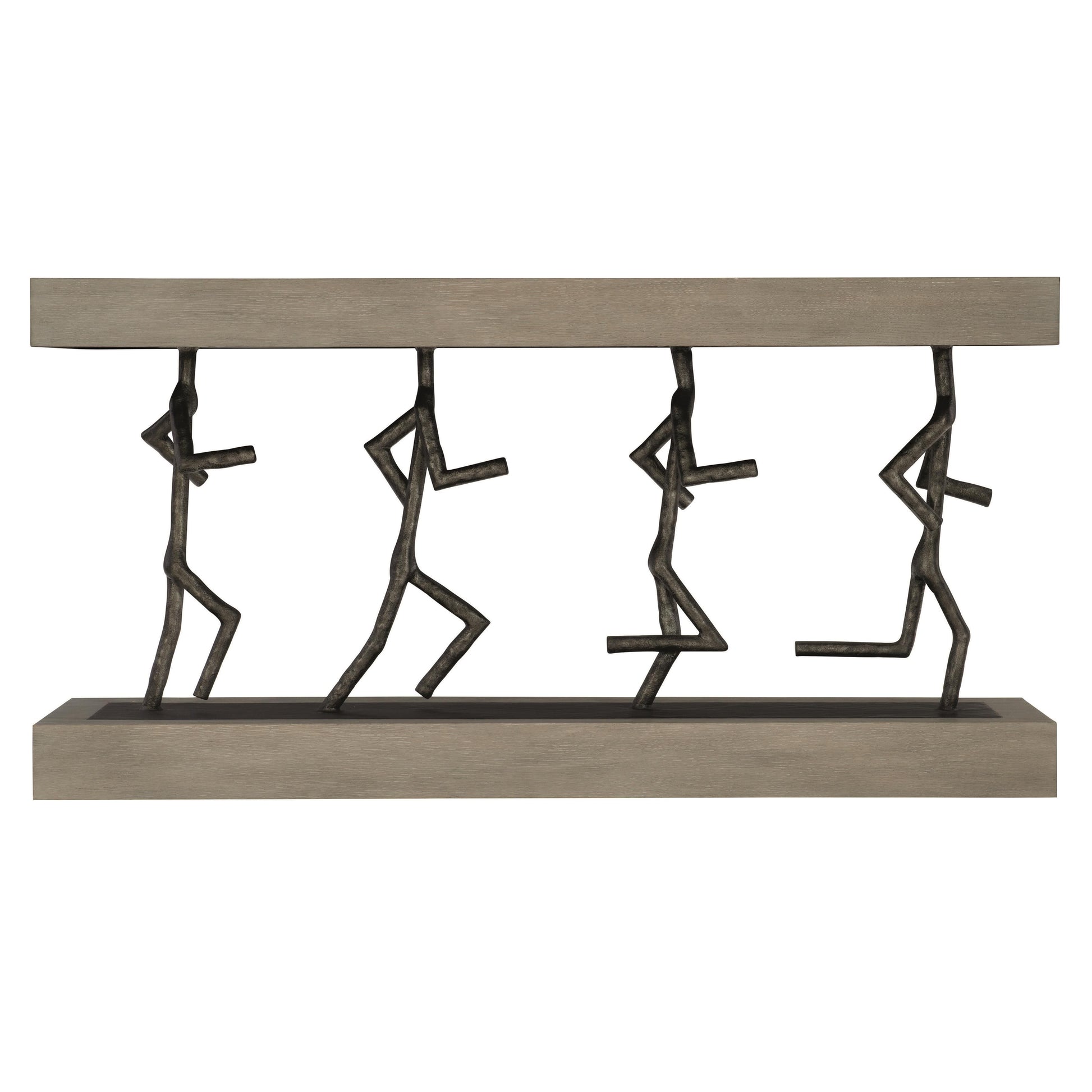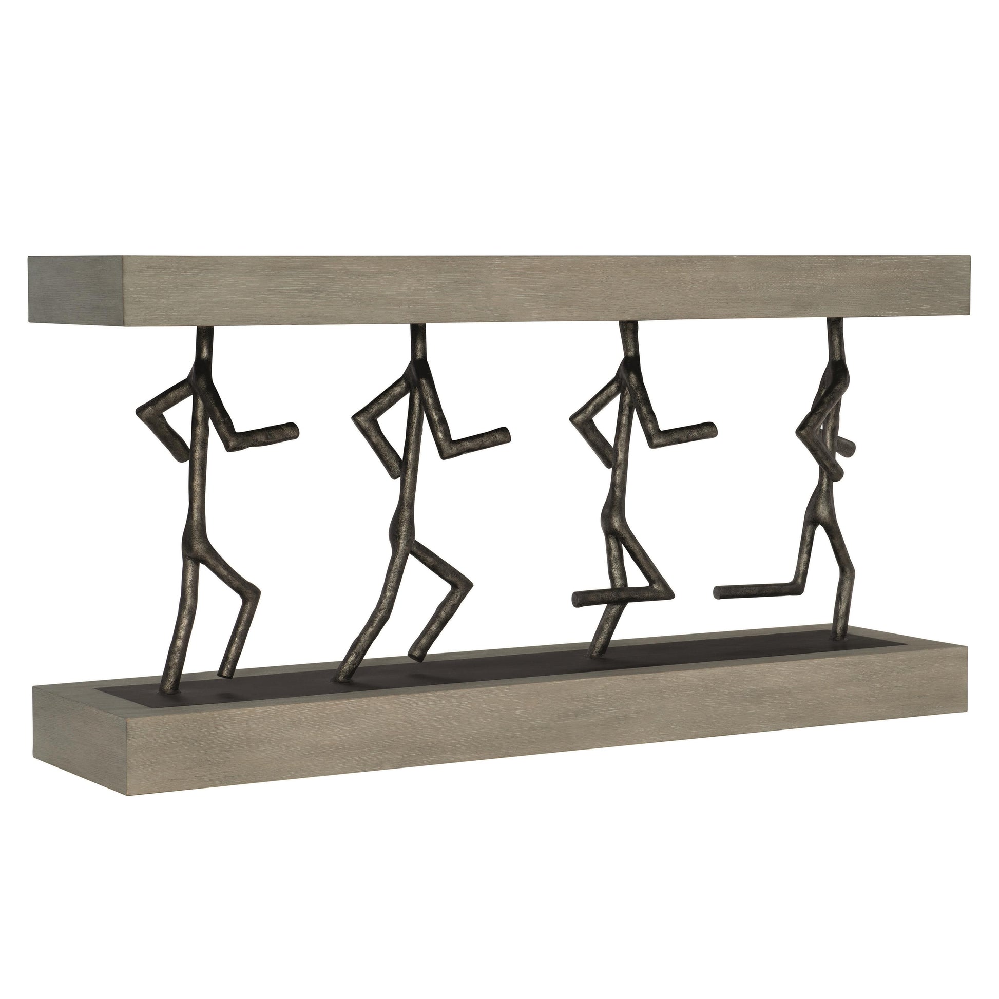 Bold and expressive, the Theo Console Table brings sculptural presence to an entryway or living space. A rectangular silhouette is animated by four cast iron figures that stride along the base, creating a striking interplay between art and function. The composition feels both modern and imaginative, designed to command attention without overwhelming the room.