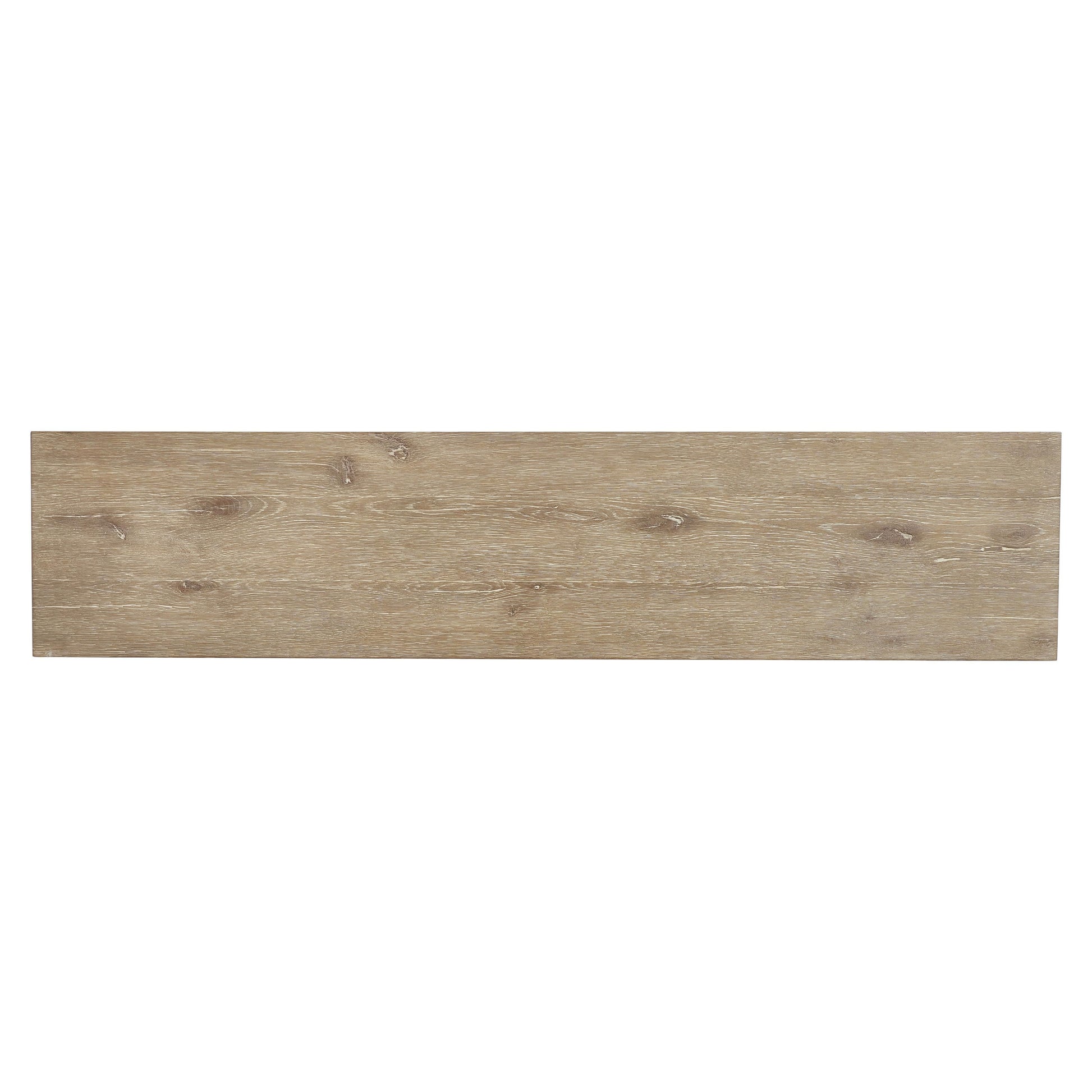 A single stretcher connects the paneled legs in a distinctive wraparound detail that reinforces both visual interest and structural integrity. Crafted from white oak, the table celebrates the organic variations of the wood, ensuring that no two pieces are exactly alike. Thoughtful proportions and adjustable glides complete the design, delivering understated functionality alongside timeless style.