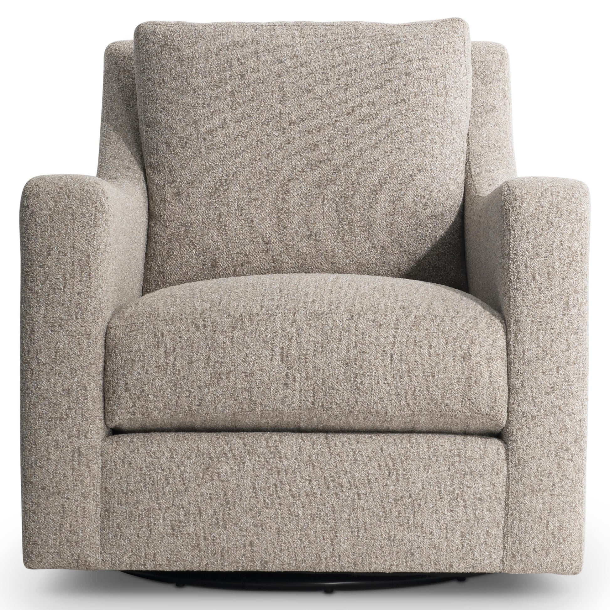 Designed for comfort as much as style, the Ventura features a deep seat cushion paired with a box-edge bordered back pillow that offers relaxed support. The smooth swivel base enhances everyday functionality, allowing effortless movement without compromising the chair’s elegant profile. Upholstered in fabric, this swivel chair delivers a comfortable, versatile seating experience with understated sophistication.