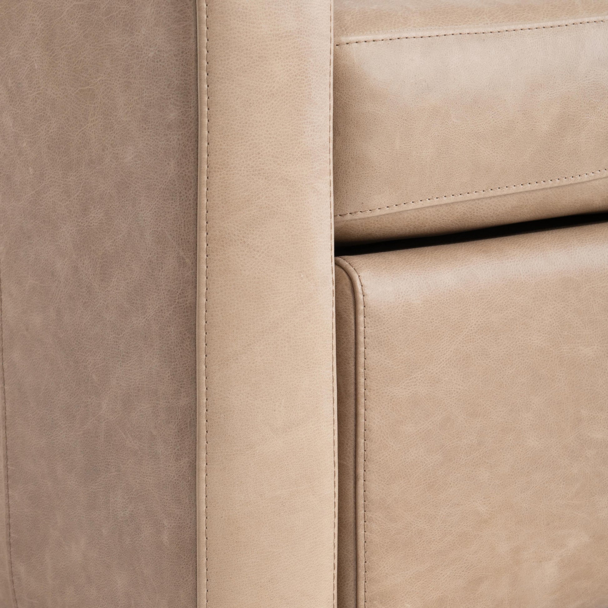 The Ventura leather power motion chair presents a poised balance of clean lines and graceful curves, blending modern clarity with subtle traditional influence. Its tall back flows seamlessly into curved track arms that gently swoop before extending into a straight, architectural line toward sturdy block feet. The silhouette feels refined yet inviting, making it a natural focal point in sophisticated living spaces.