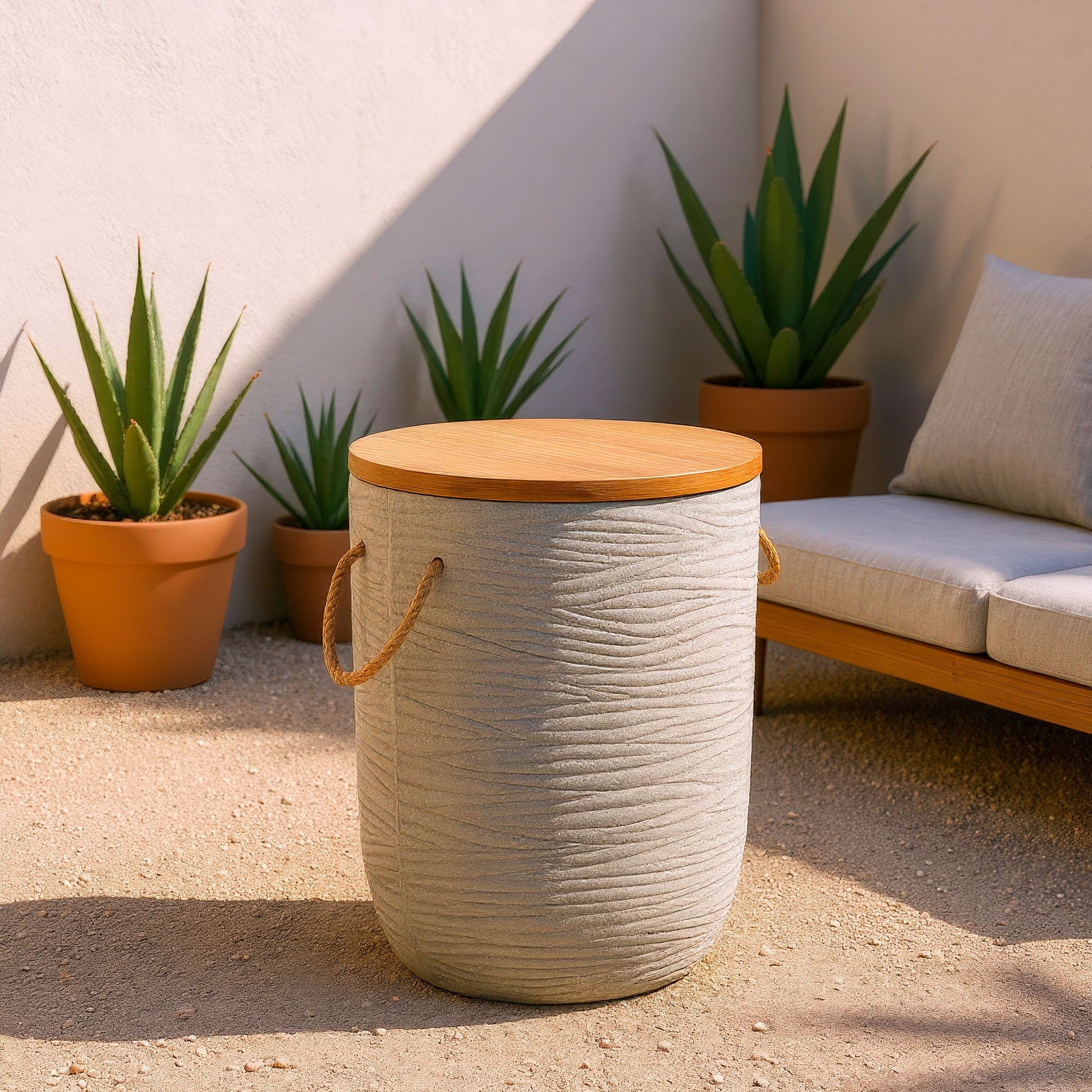 - Product Materials: Brushed Acacia Wood, Faux Concrete Super Poly-Stone
