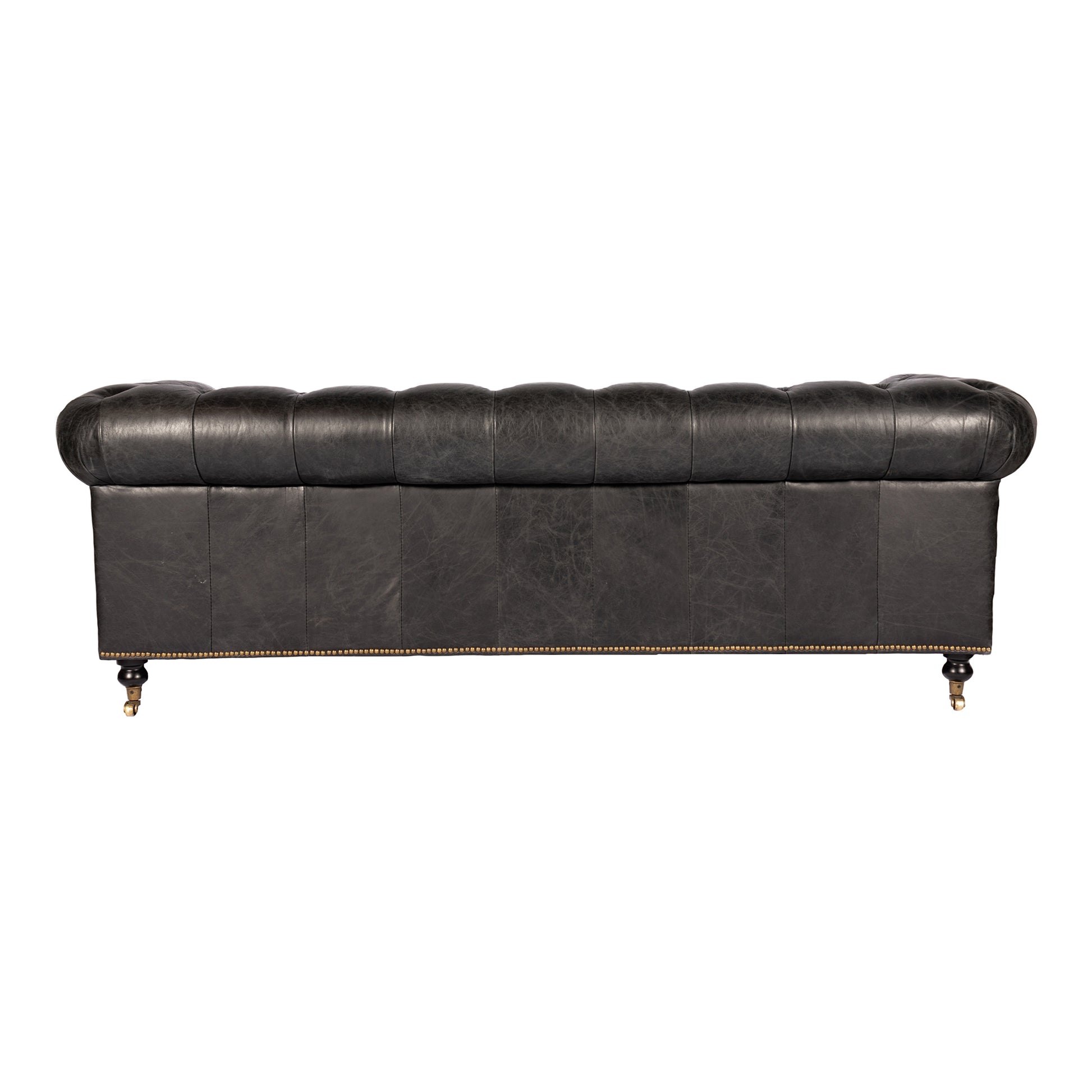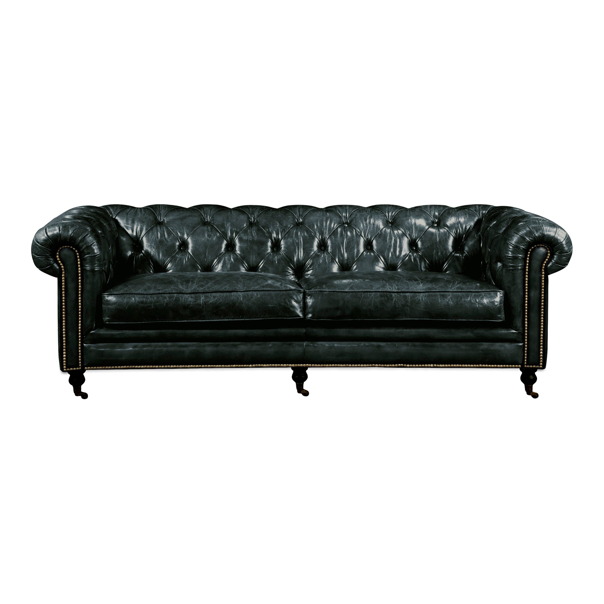 Capturing the bold elements of traditional design, the Birmingham Sofa adds sophistication to your living space with its top-grain leather's rich brown. Sharp details are apparent in the chesterfield's tufted back, rolled arms, and meticulously placed brass detailing�pairs nicely with an Old Fashioned.