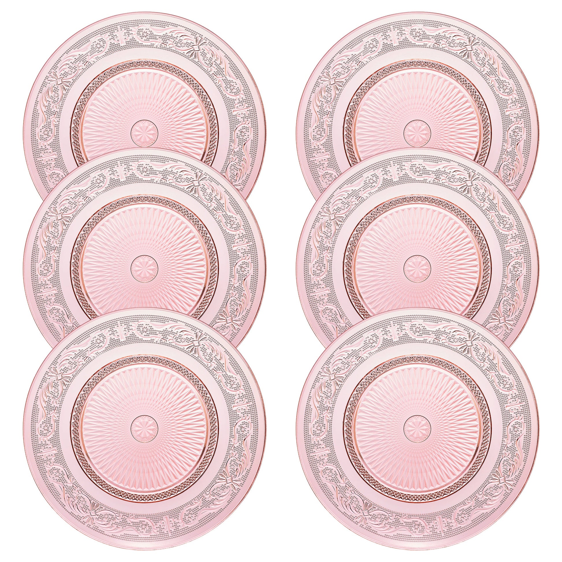 Blush Vintage Glass Plate, Set of 6. 10" diameter.