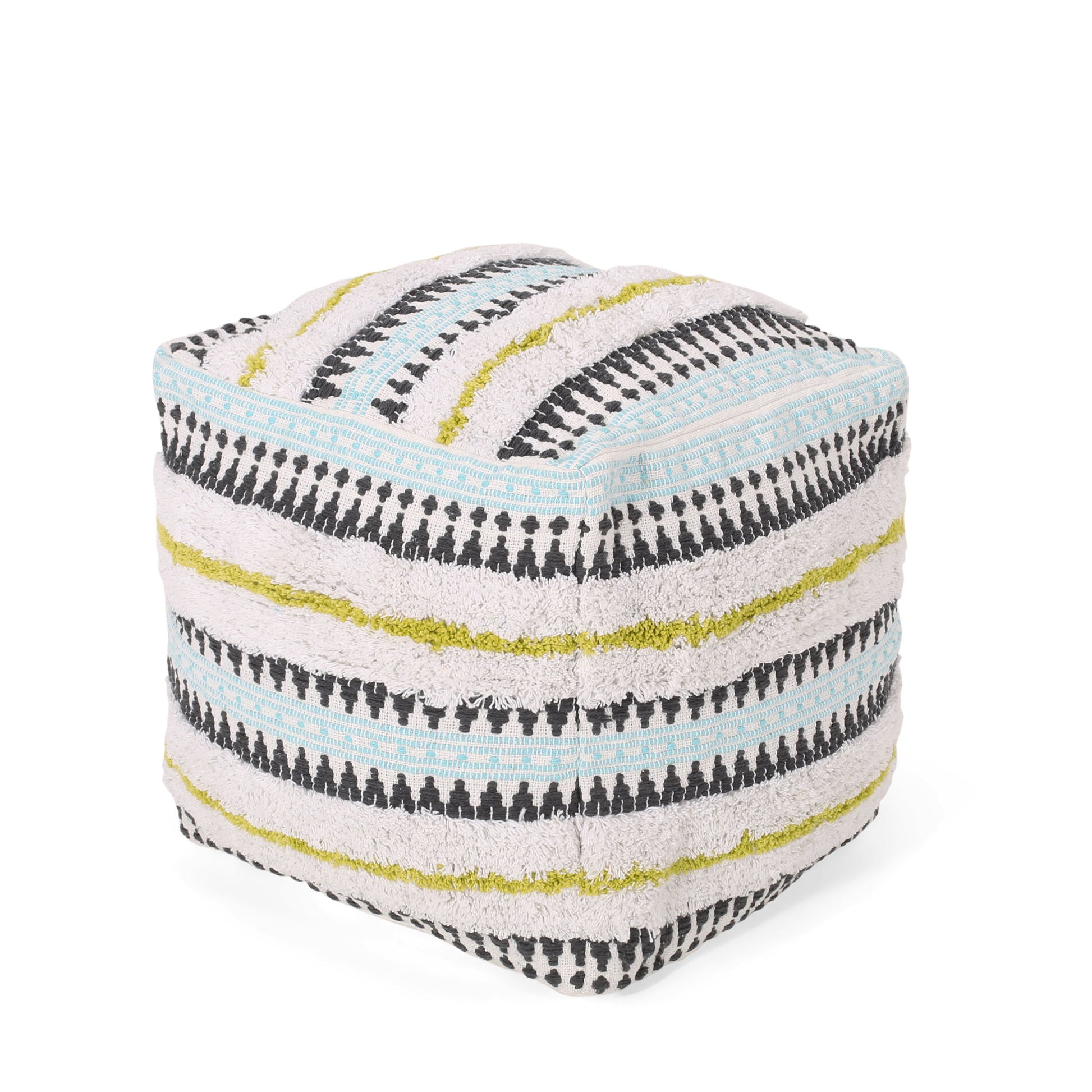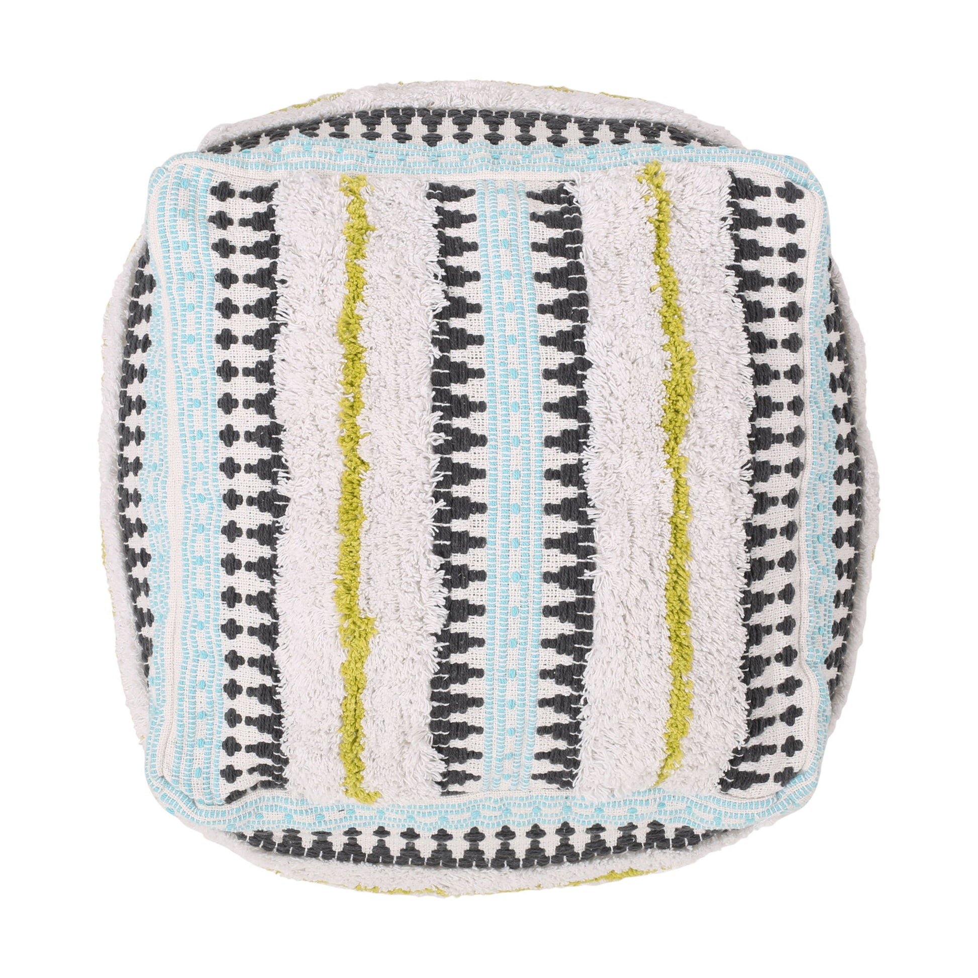 Bohemian Woven Cotton Pouf With Handwoven Design - Multi