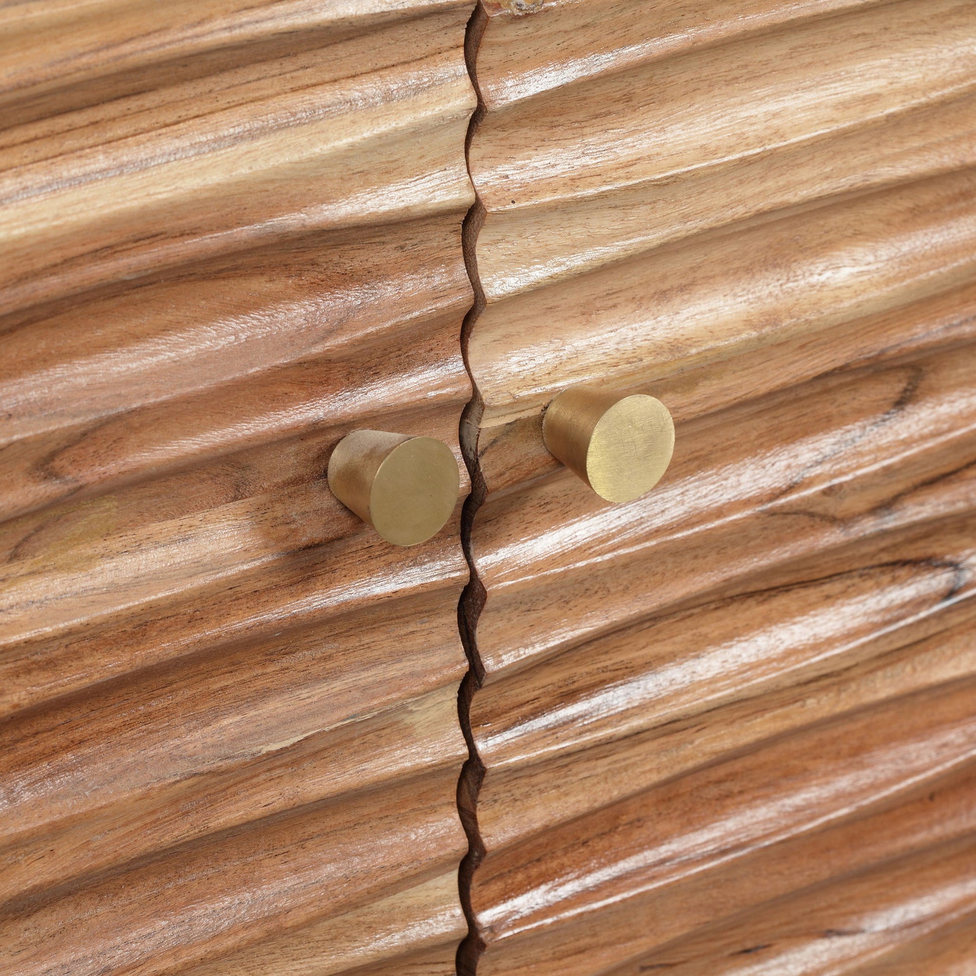 Boho Handcrafted 3 Door Sideboard, Carved Texture & Artisanal Charm - Natural