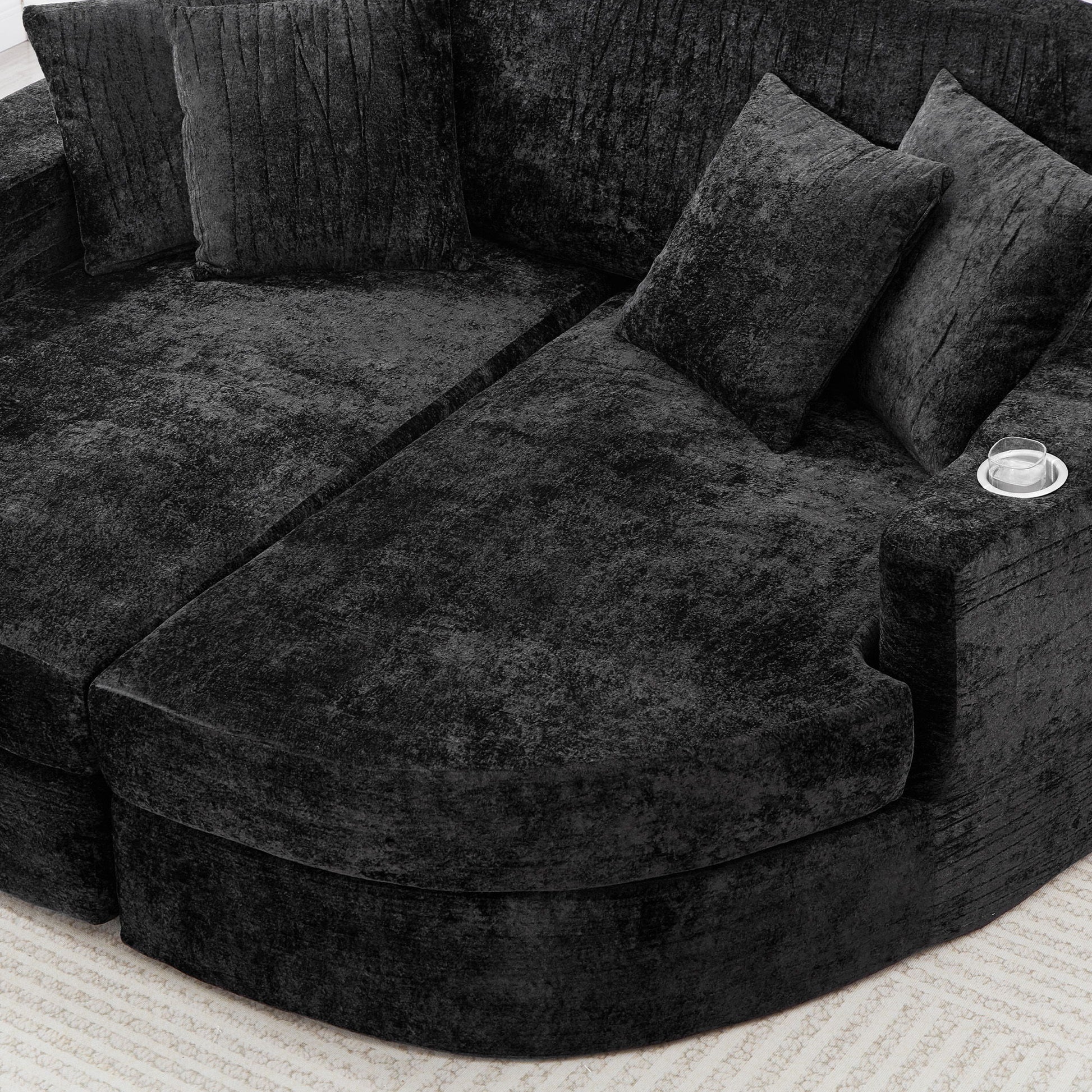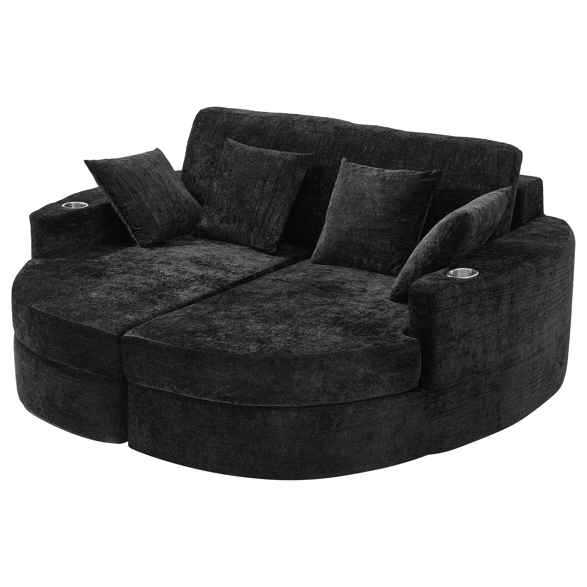 Curved Chaise Sofa, Boneless Design Upholstered Lounge With Cup Holders - Black