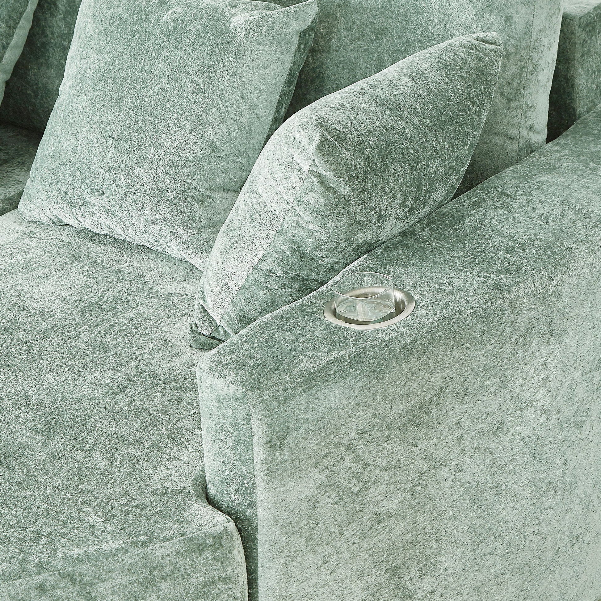 Curved Chaise Sofa, Boneless Design Upholstered Lounge With Cup Holders - Green