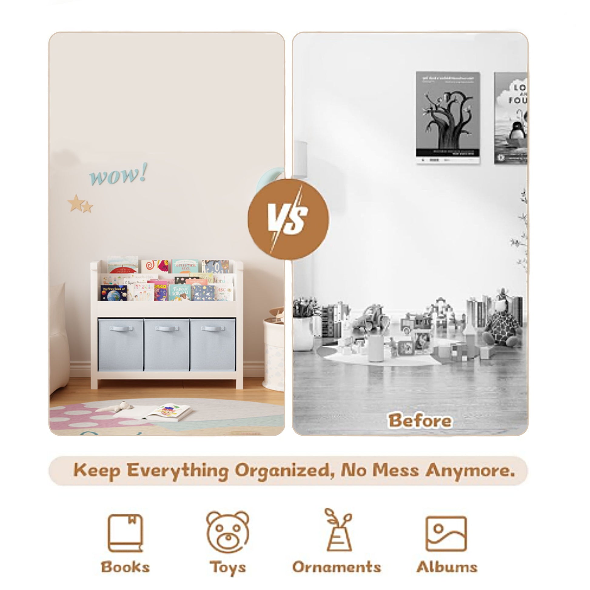- 3-Tier Front-Facing Storage: Spacious open shelves enable children to see and select books at eye level, promoting independent reading habits.