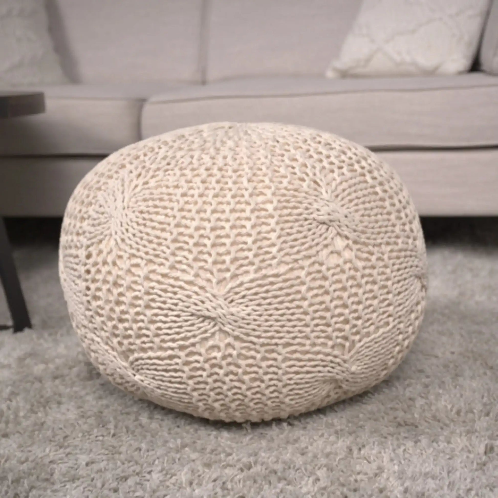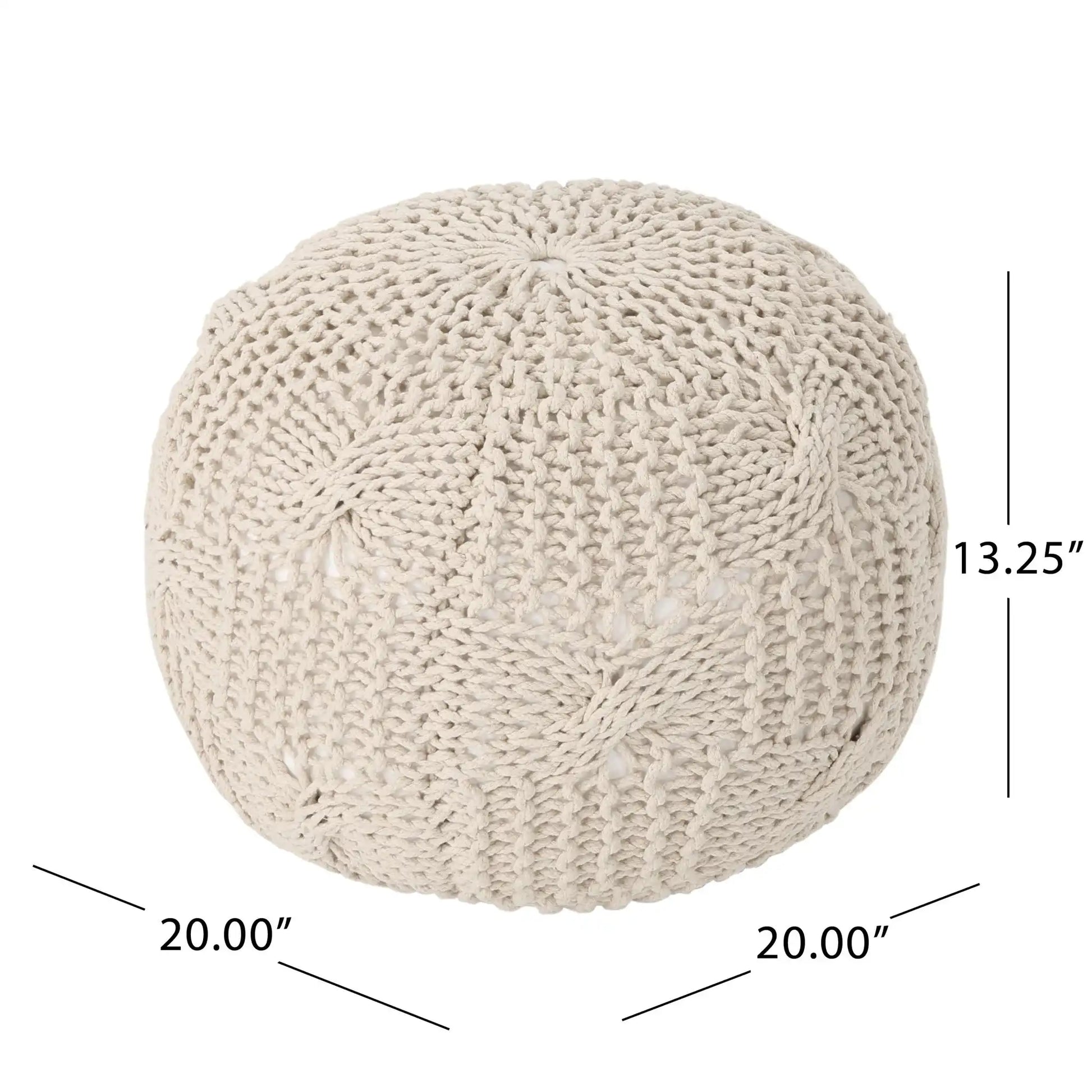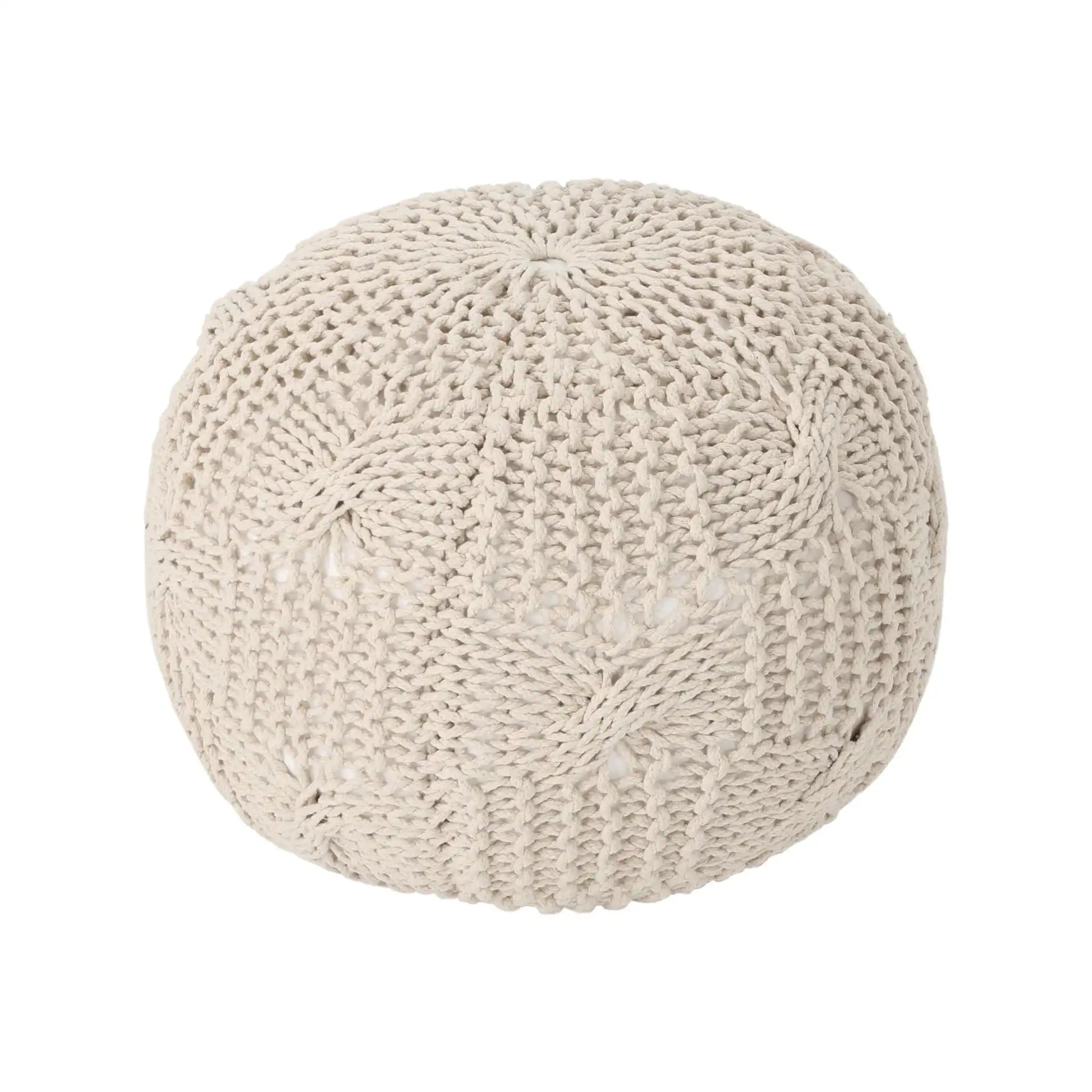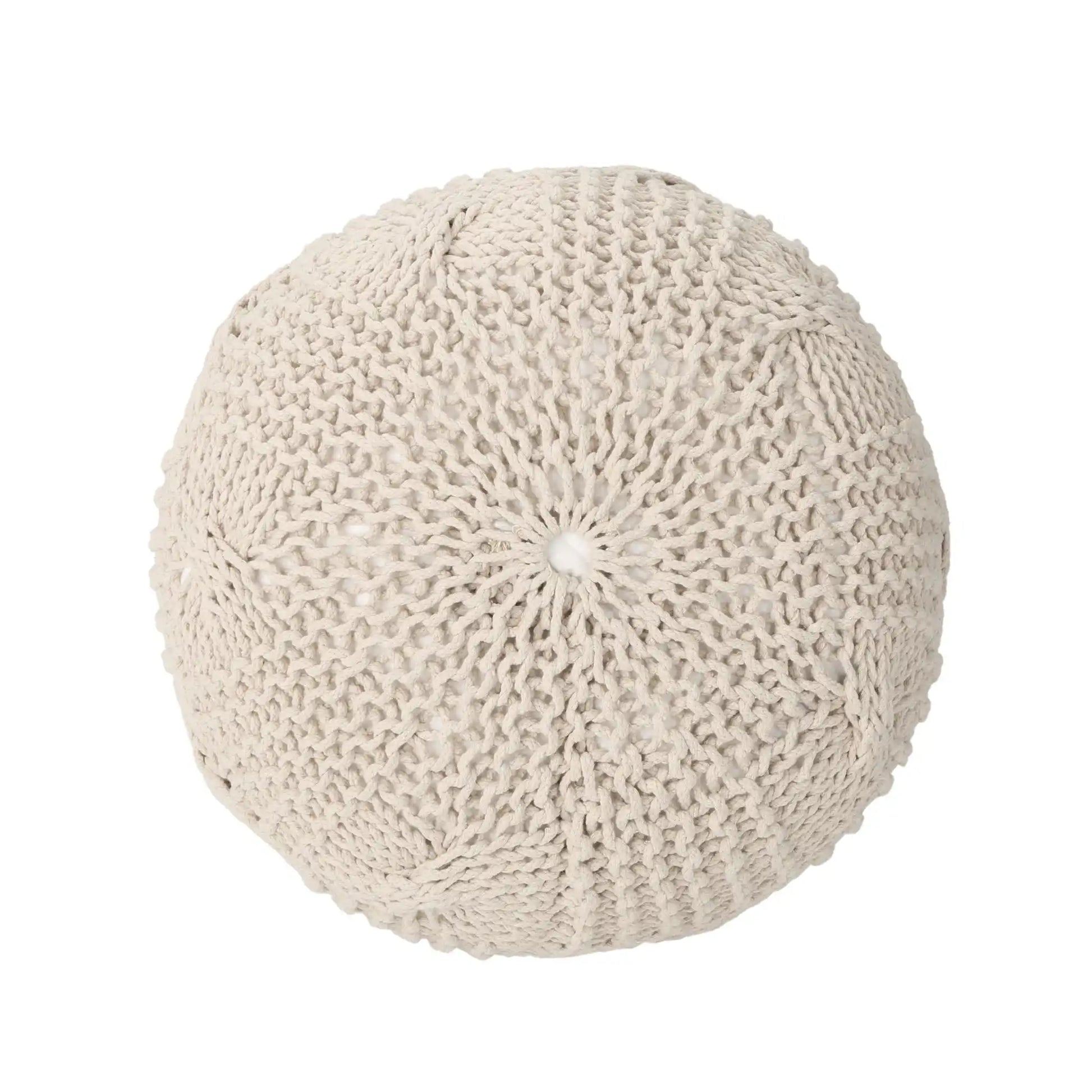 Bordeaux - Knitted Cotton Round Pouf Ottoman Floor Cushion - Beige