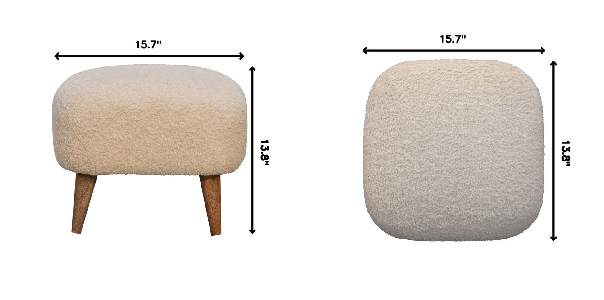 - Features: boucle, cream, footstool, living room, hallway, nordic, upholstered, solid wood, mango wood, accent piece